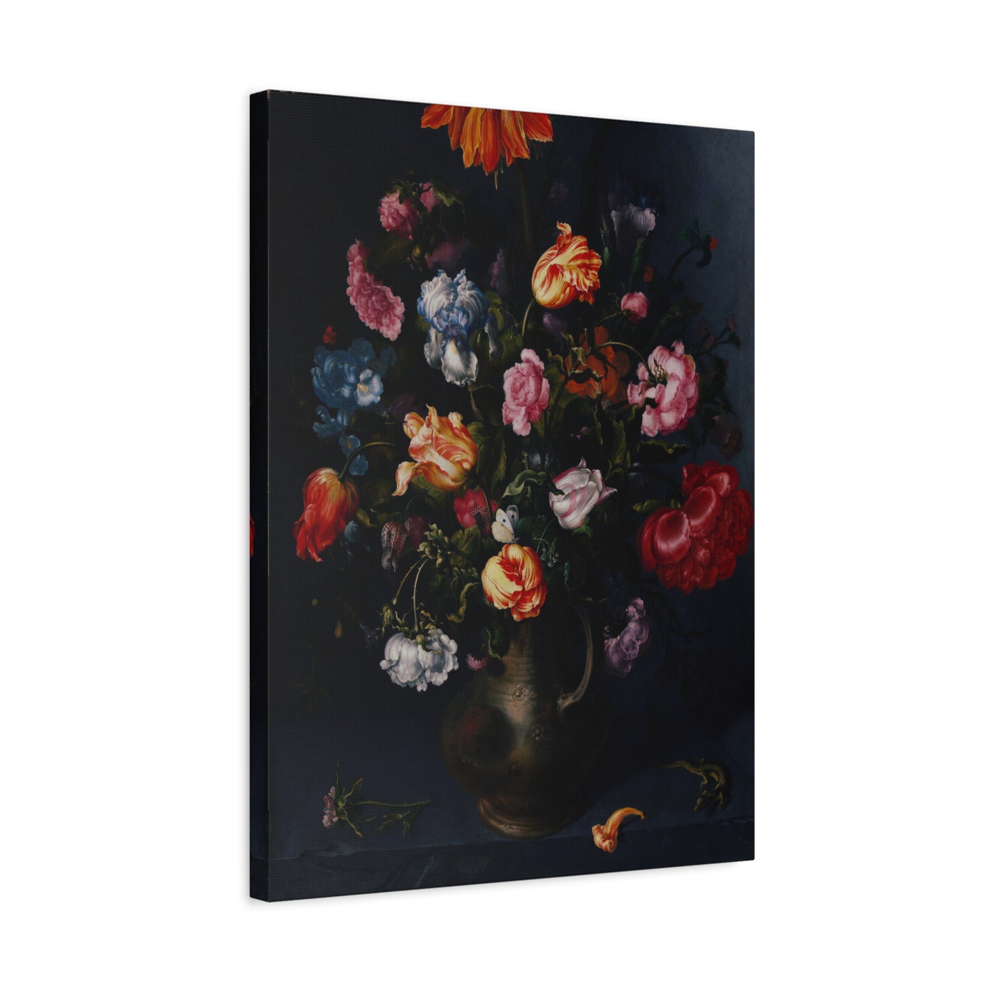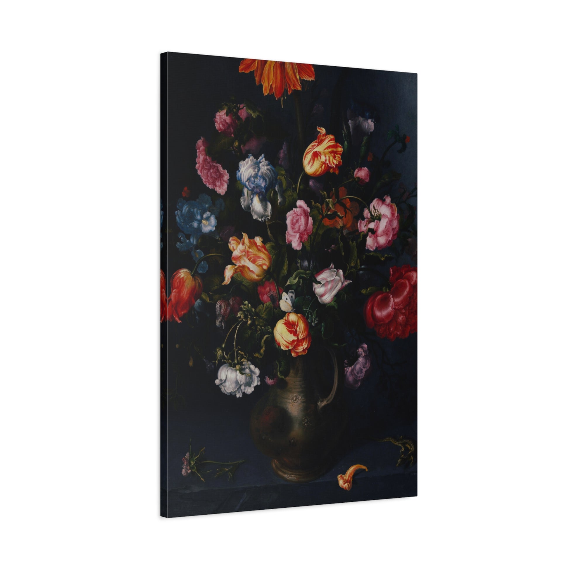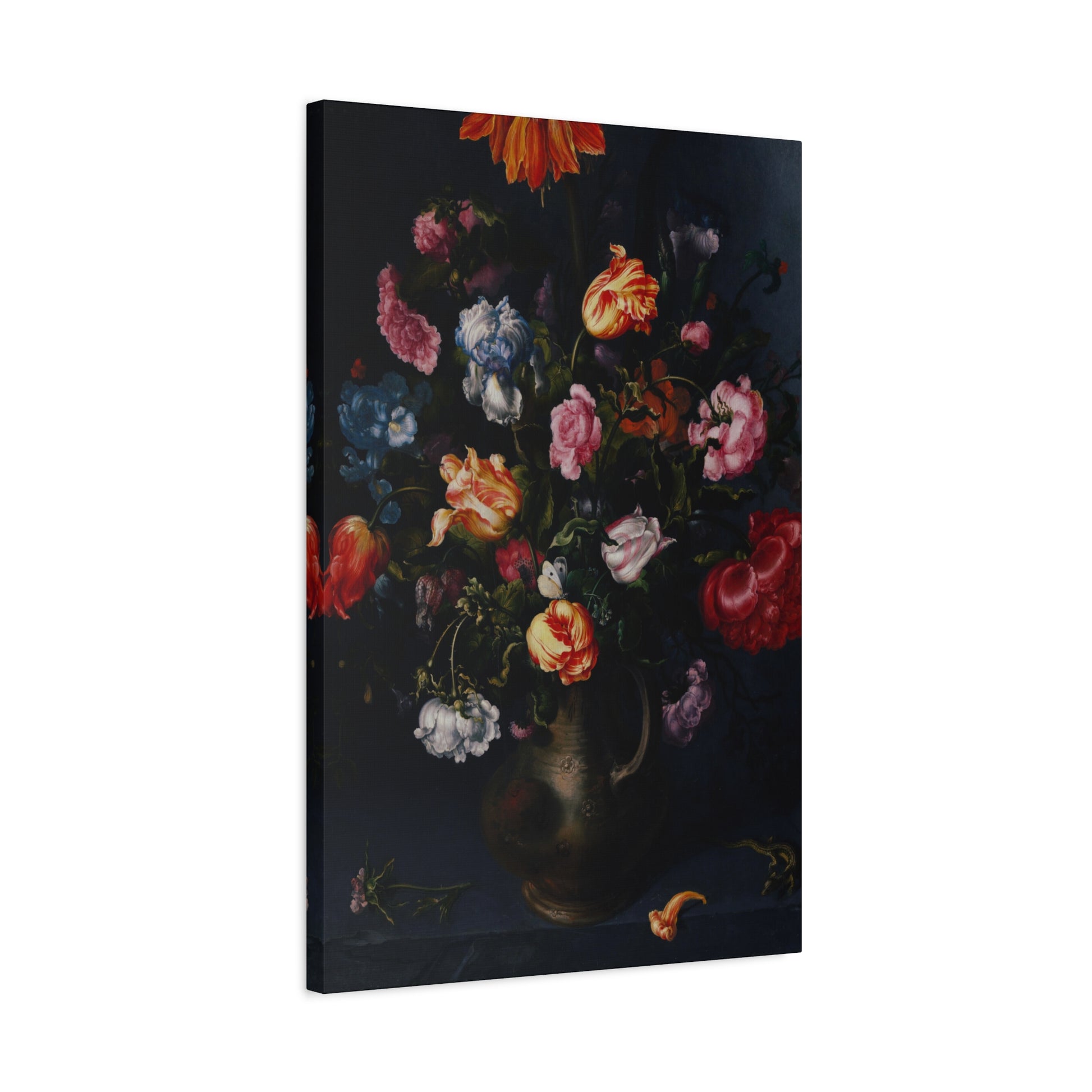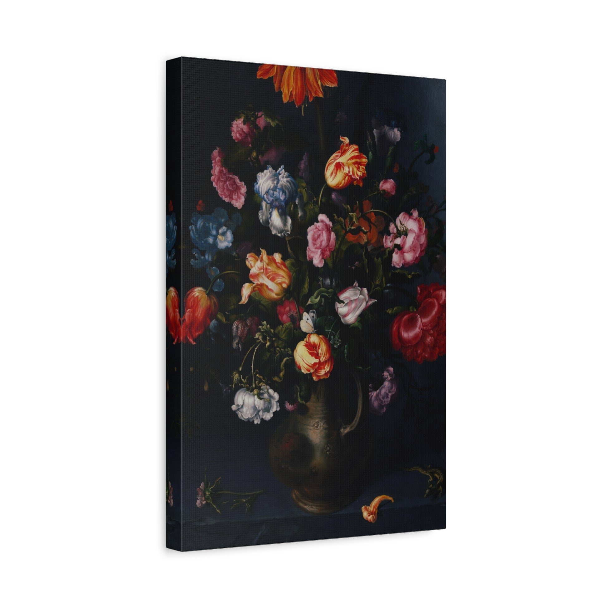 Introduce timeless elegance through our digitally enhanced vintage canvas print showcasing Jacob Vosmaer's masterpiece, "A Vase with Flowers" from 1613. Delve into the intricate details and vibrant hues that bring life to this classic floral arrangement. With precision in digital enhancement, this art print pays homage to Vosmaer's work, offering a sophisticated choice for art enthusiasts and collectors alike.