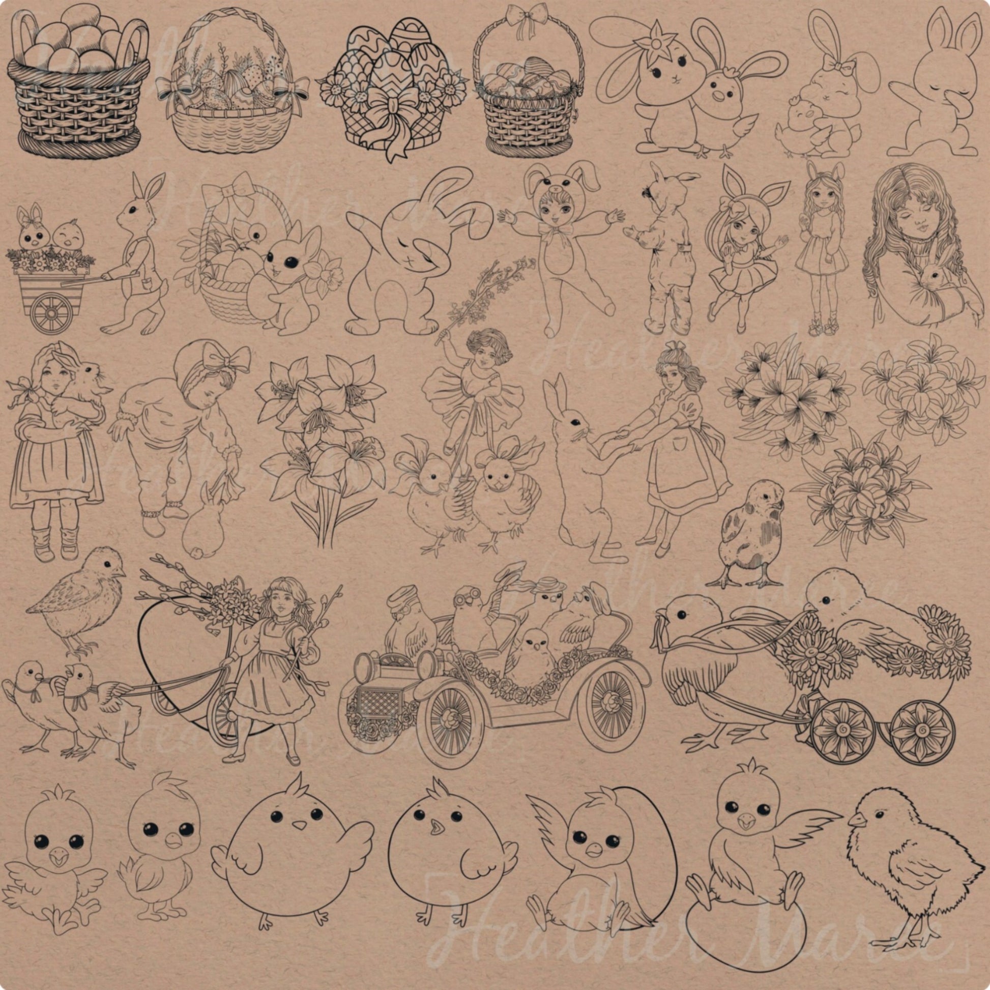 🌹 6 vintage Easter people stamps (based on vintage easter cards)