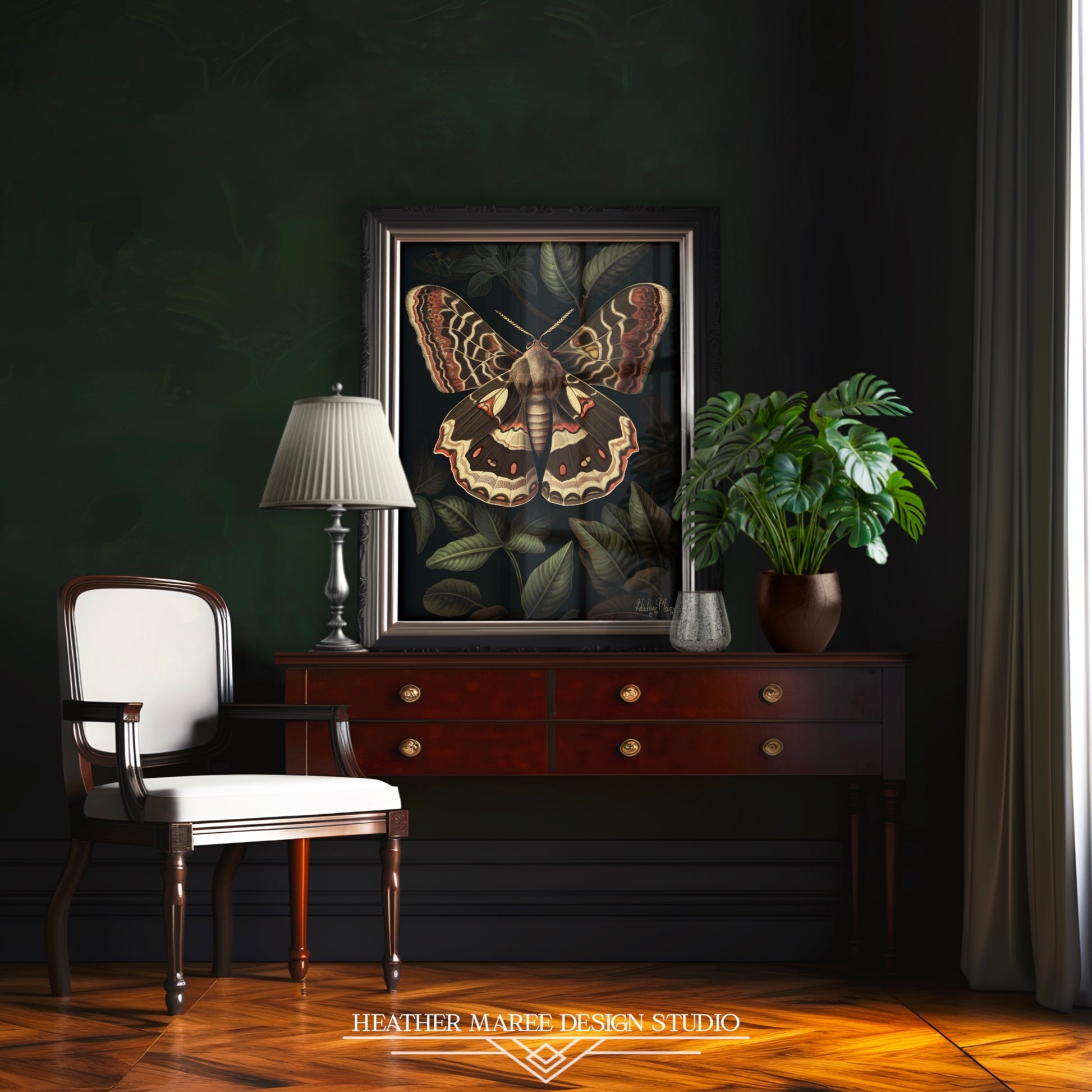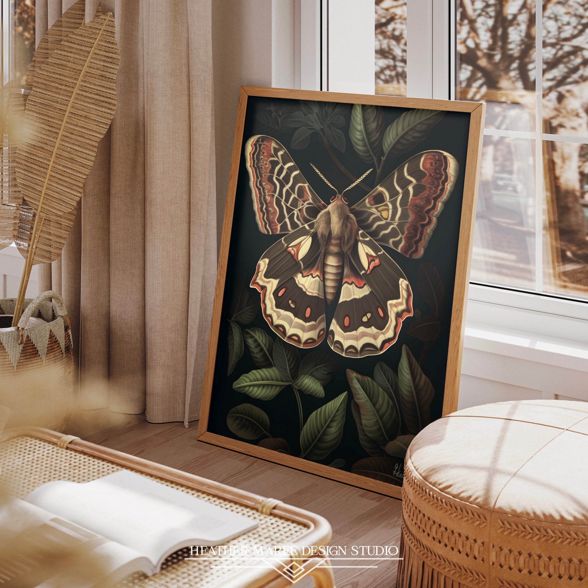 This printable artwork is a wonderful fit for a variety of classic and contemporary home decor styles, bringing a unique and natural charm to any space. In dark academia interiors, it captures the thoughtful connection to nature, creating an atmosphere of intellectual curiosity and quiet elegance. For those drawn to the whimsical appeal of dark cottagecore aesthetics, this piece evokes the feeling of stepping into an enchanted woodland, filling your space with the magic of nature. Whether you’re styling a maximalist, eclectic space or simply looking for a striking focal point, this artwork offers layers of depth and beauty, making it a truly captivating addition.