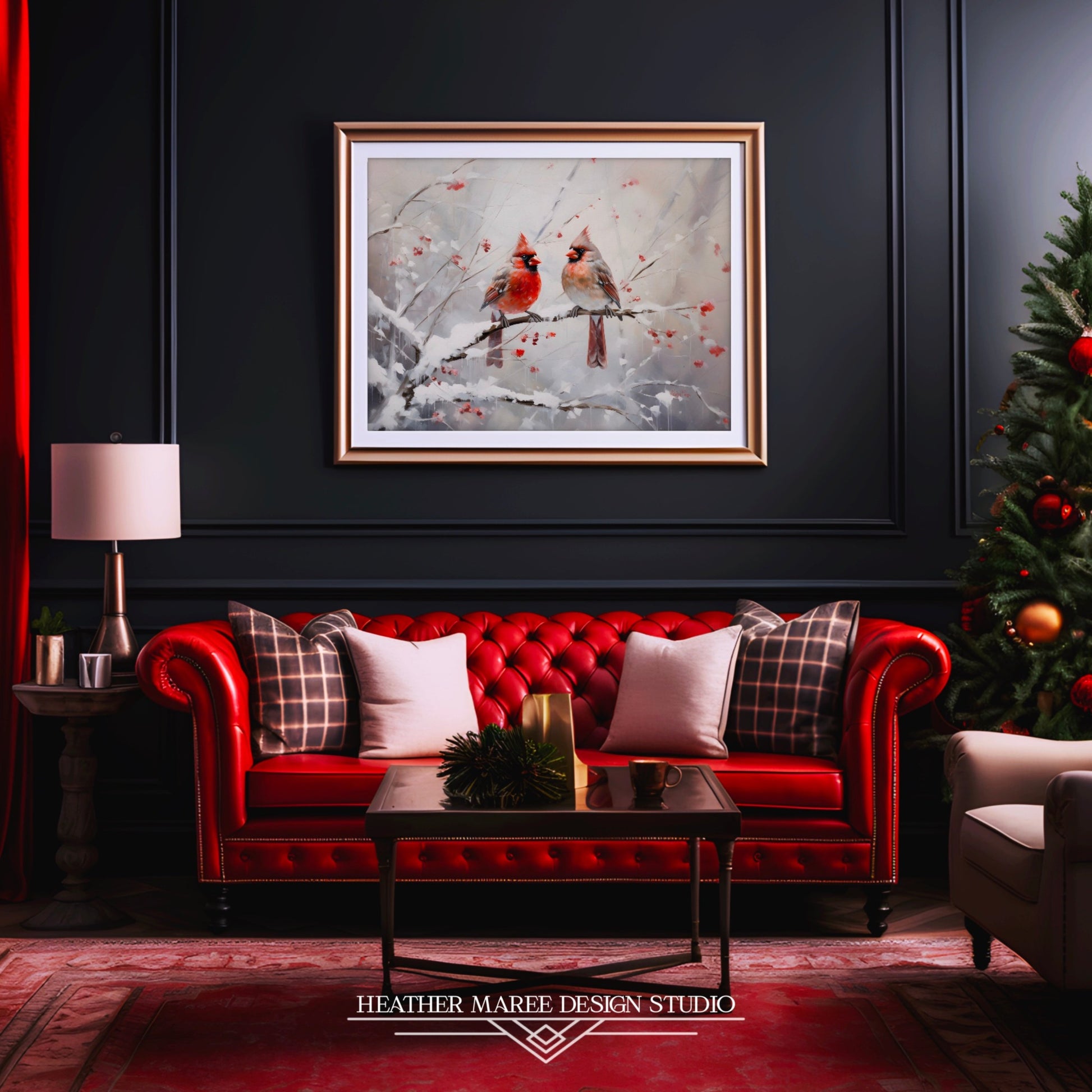 This exquisite artwork seamlessly complements a range of décor styles, making it a perfect addition to rustic, Christmas, and holiday home décor. Its depiction of the cardinals amidst a winter wonderland brings the festive spirit to life, making it an ideal choice to enhance the ambiance of your space during the holiday season. Whether you're adorning your home with a maximalist or vintage-inspired touch, this painting's timeless beauty and soothing palette will infuse your space with a touch of nature's tranquility, creating a cozy and inviting atmosphere 🖼️💖
