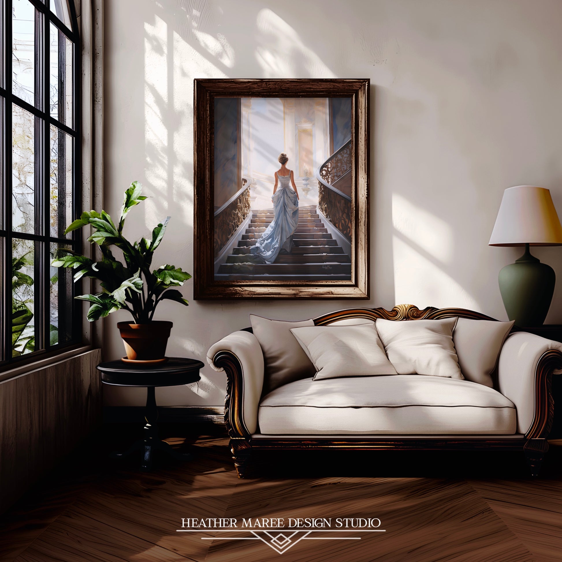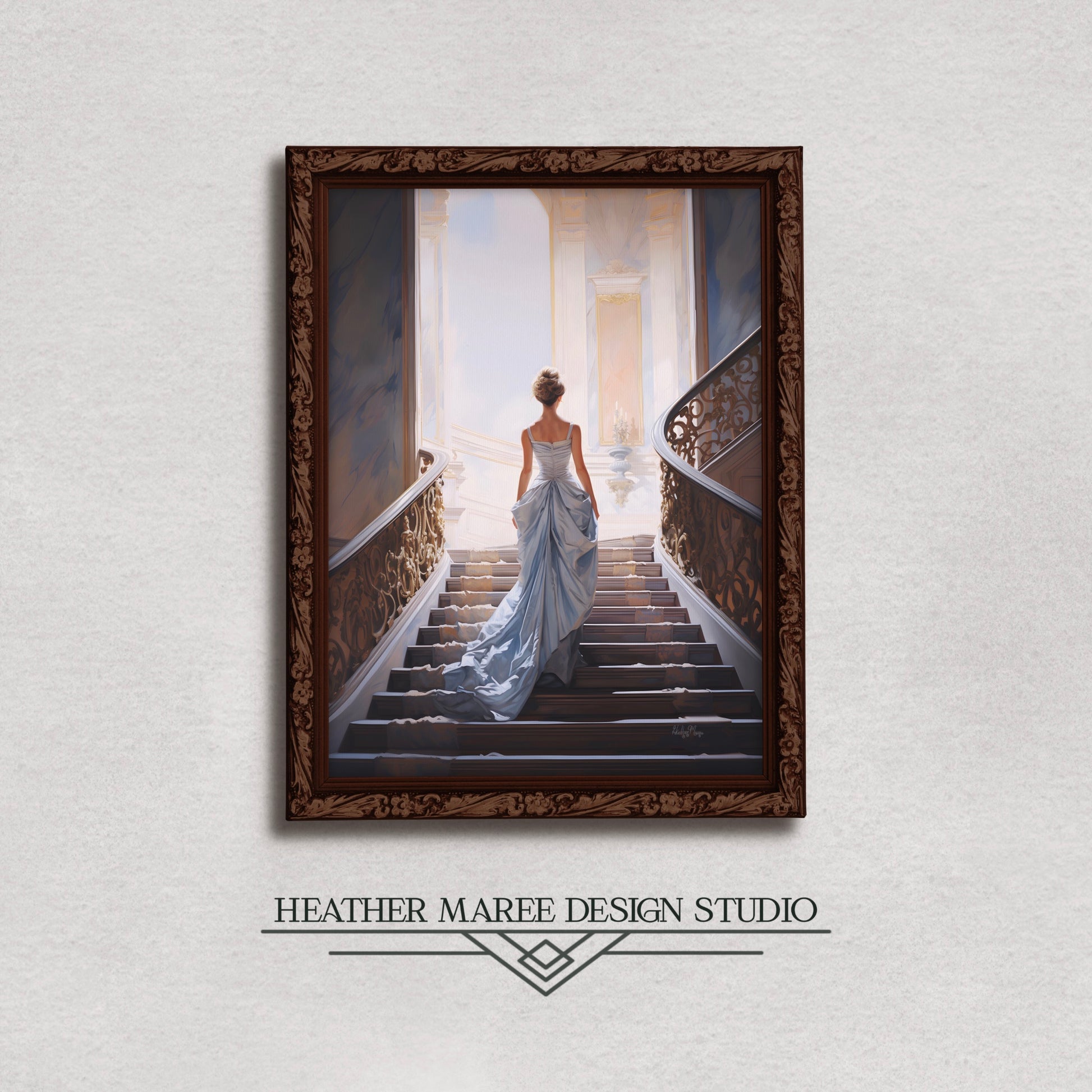 Beyond mere decoration, this art print is a testament to classic fairy tale enthusiasts. The meticulous portrayal of Cinderella's ascent on the staircase transforms the illustration into a unique focal point, seamlessly integrating into diverse design aesthetics. From maximalist-inspired home decor to the understated charm of French country styles and the allure of vintage-inspired settings, this piece adds a touch of sophistication to any space.