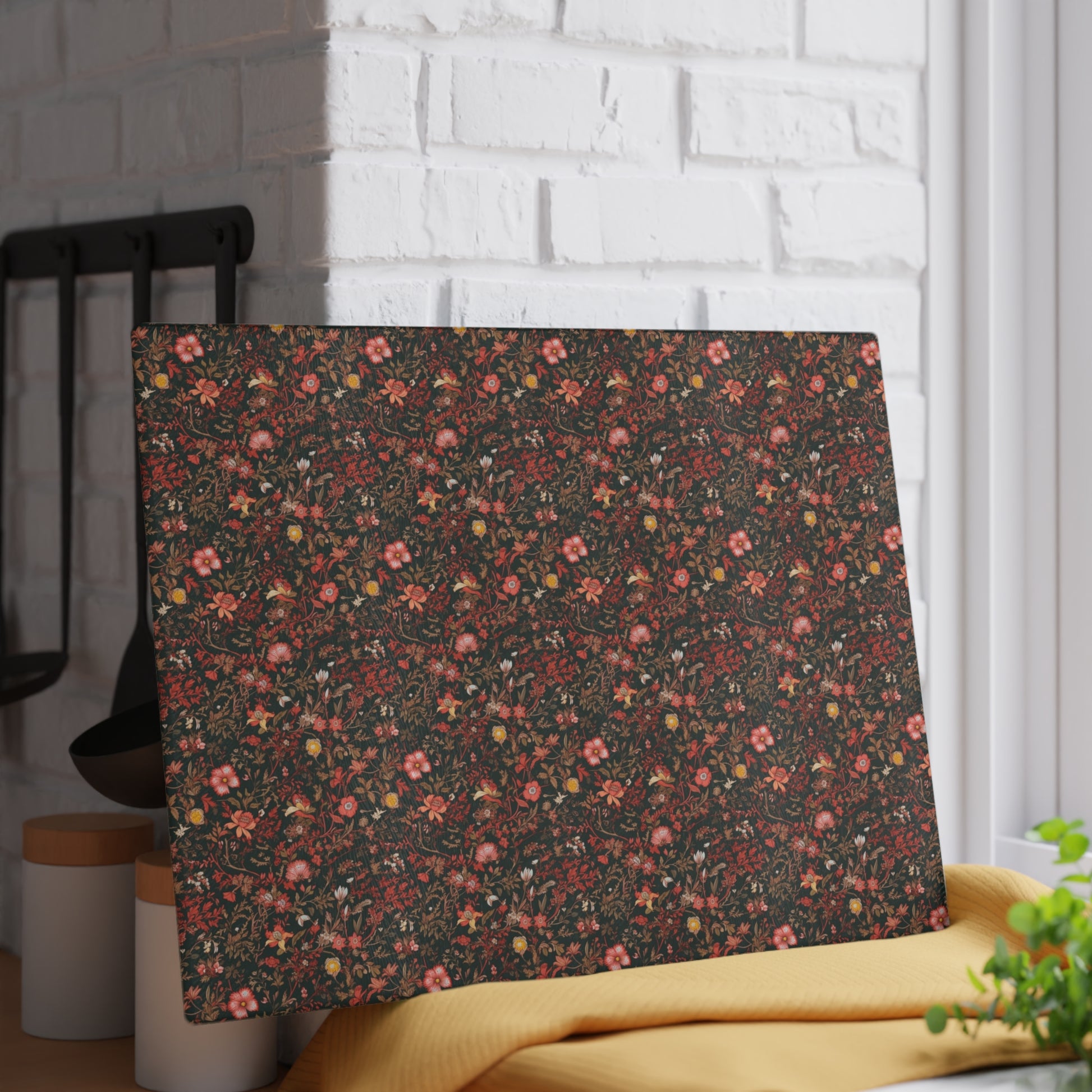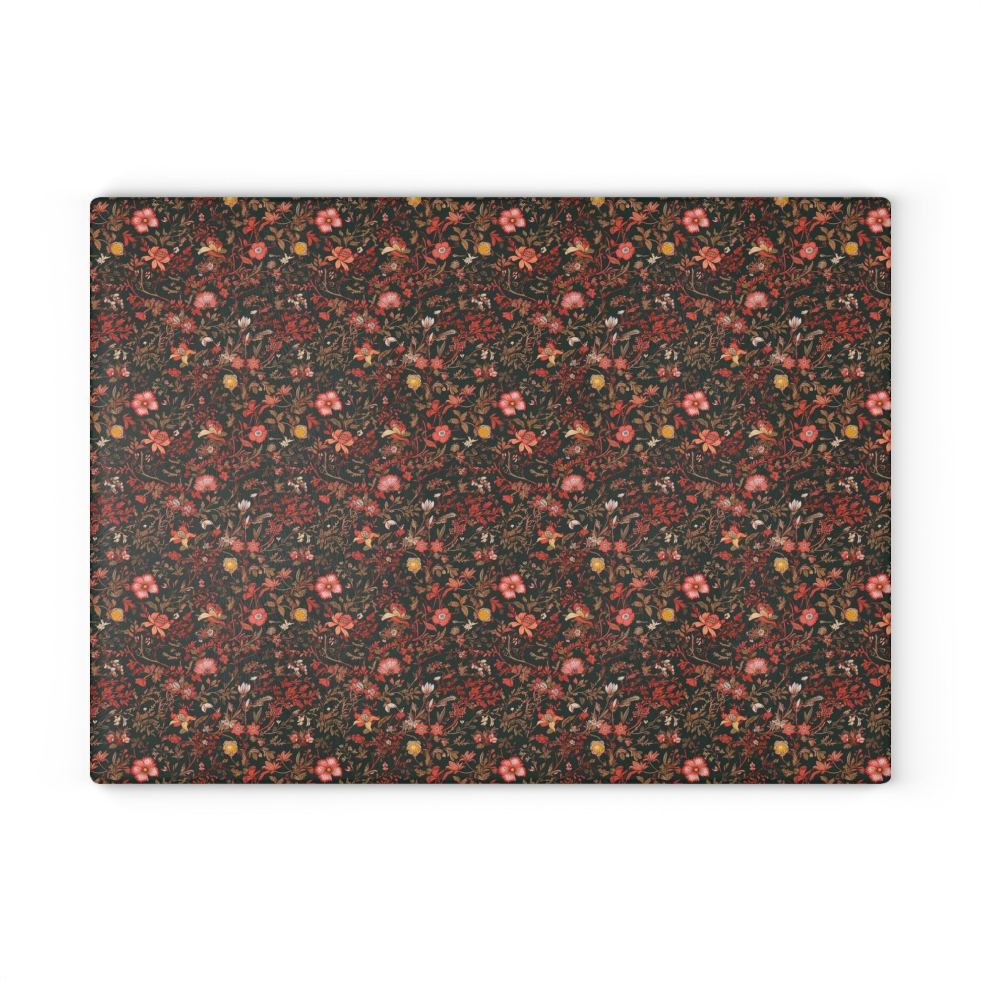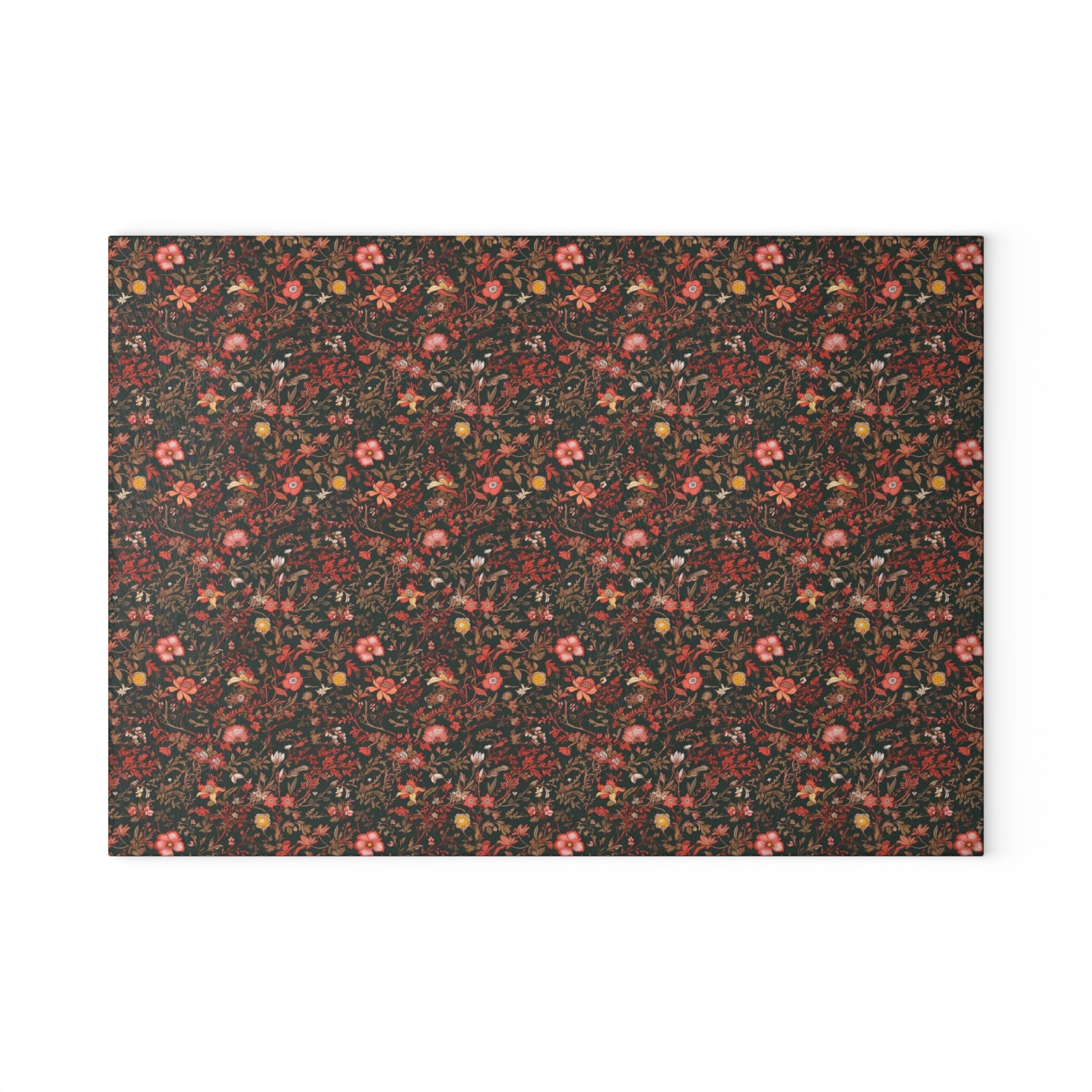 Revitalize your kitchen decor with this glass cutting board, featuring an original vintage-inspired pattern adorned with pink and burgundy flowers set against a rich dark green background. This unique piece seamlessly infuses character into your culinary space, effortlessly blending aesthetic charm with practical functionality. Available in two sizes, this glass cutting board is thoughtfully designed to meet the diverse needs of your kitchen. Make a statement with the addition of this exquisite glass cutting board, where style and utility converge seamlessly 🖼️💖