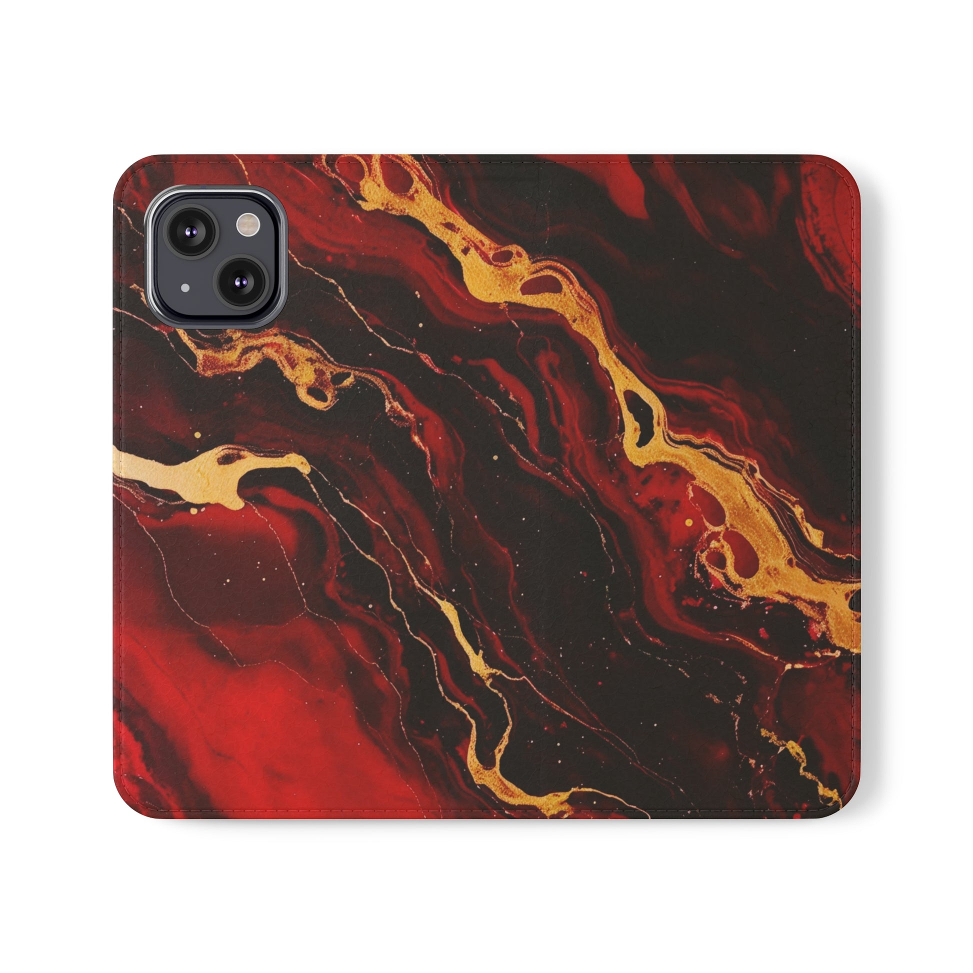 Reveal the epitome of elegance with this faux leather flip phone case, a masterful fusion of style and durability. This original design showcases a regal blend of burgundy, red, and black marble, beautifully enhanced by the enchanting glimmer of gold vein accents. Versatile and striking, this case seamlessly integrates with your unique fashion sensibilities.