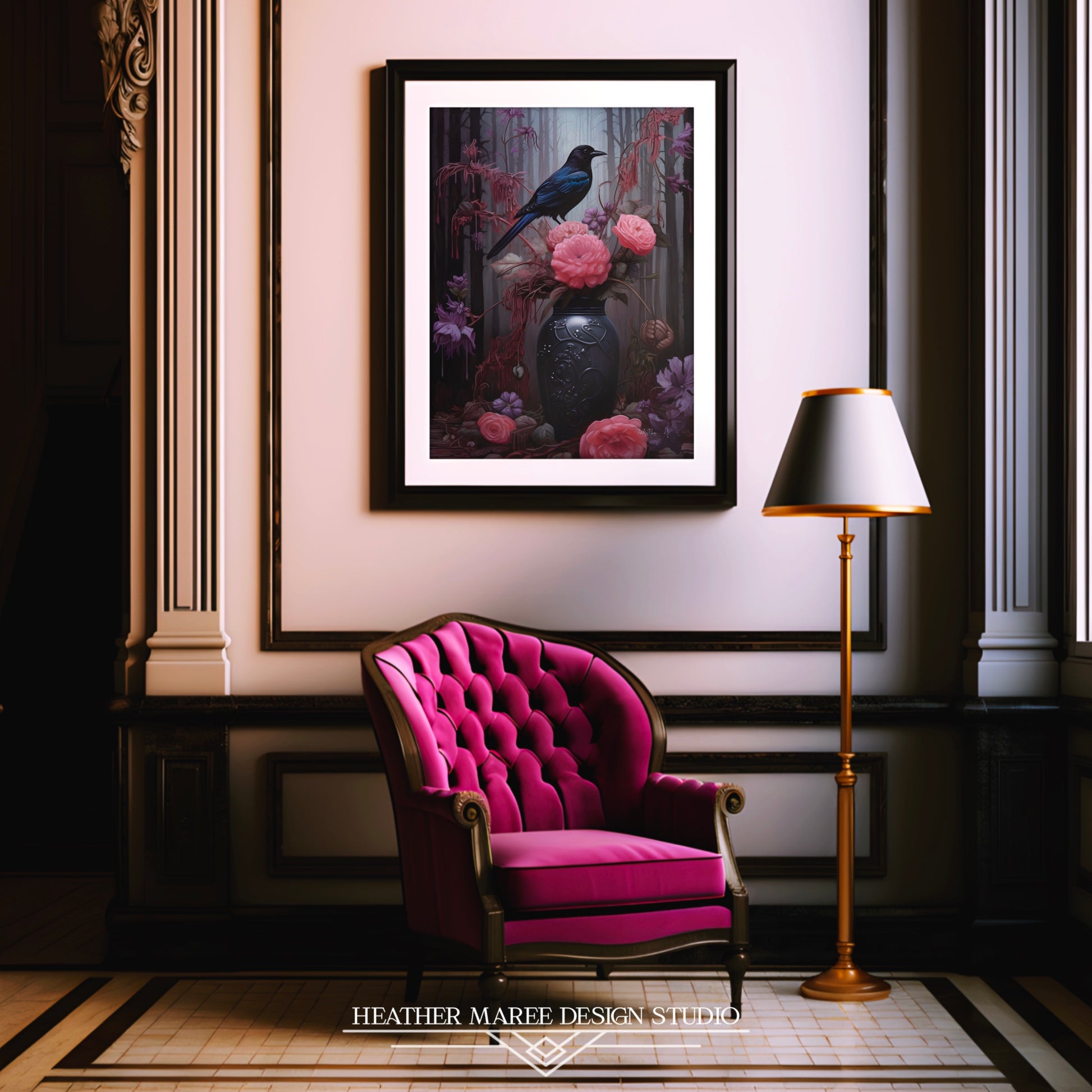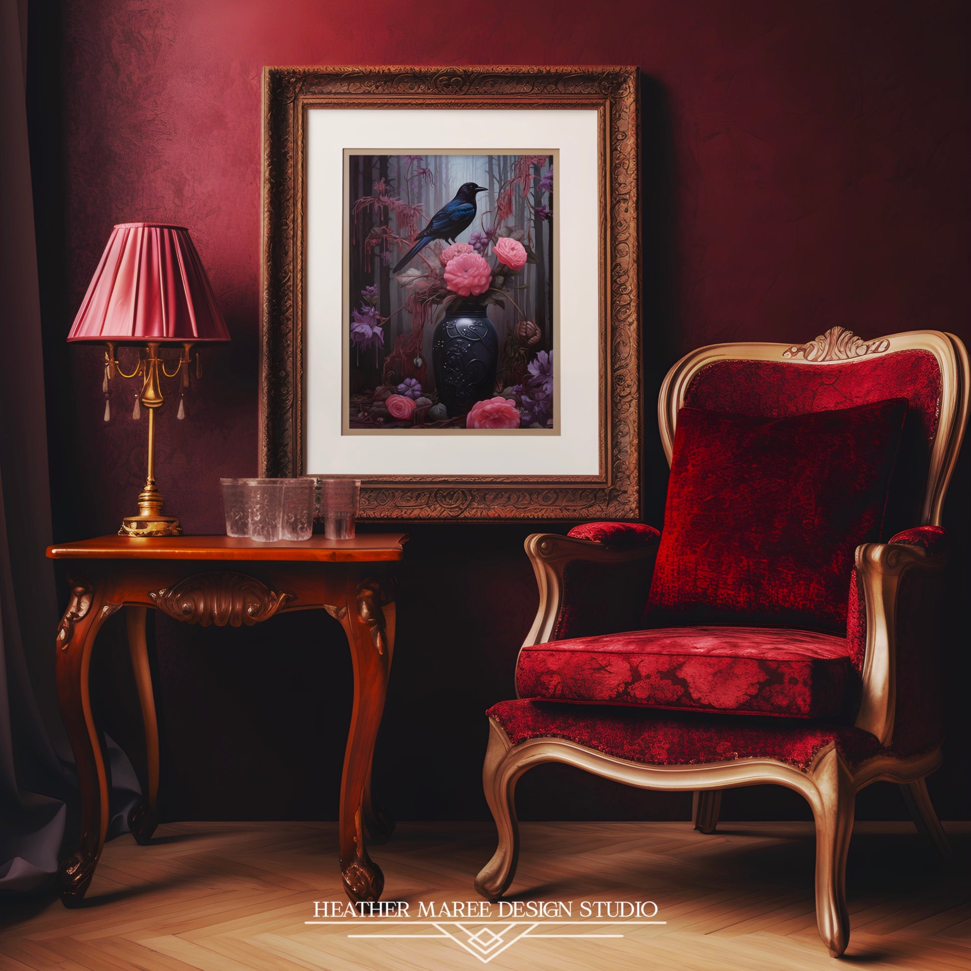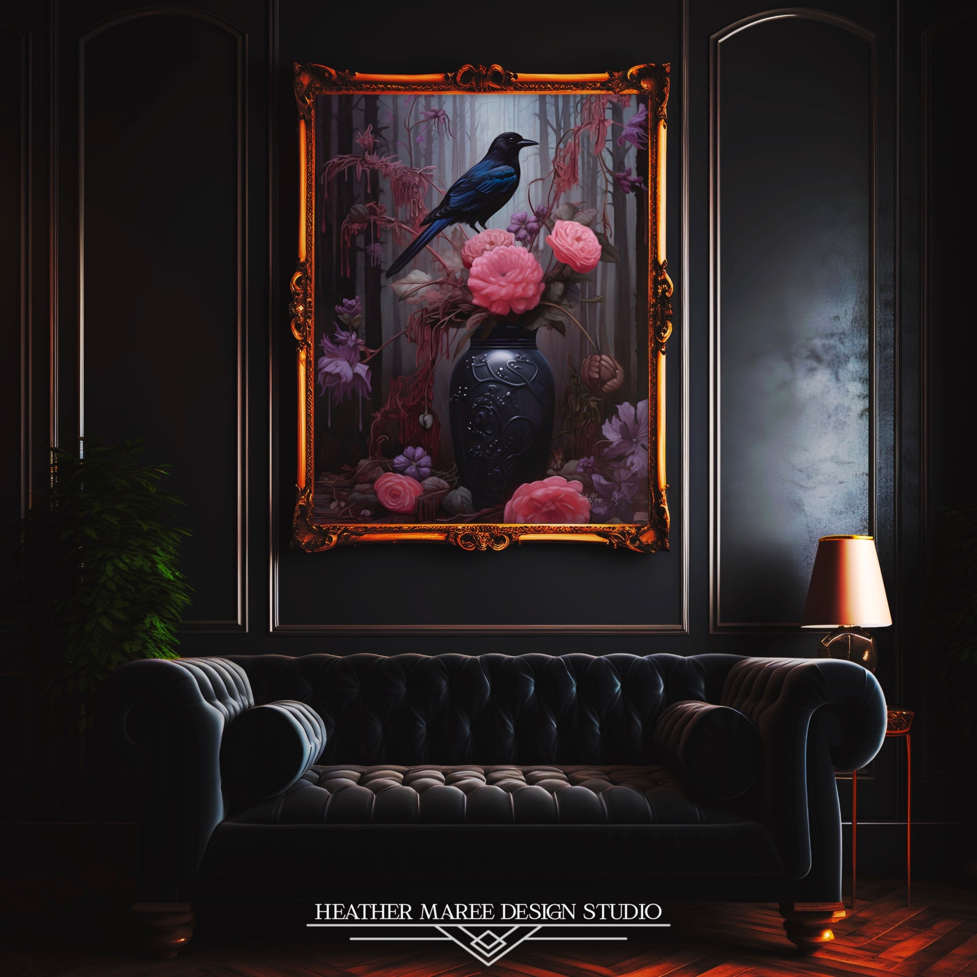 The dark allure of this artwork is perfect for accentuating the ambiance of moody vintage interiors, gothic-inspired spaces, amongst other maximalist decor aesthetics. Whether adorning the walls of a cozy reading nook, lending an air of mystery to a gothic bedroom retreat, or infusing a maximalist living area with enchanting charm, this print adds depth and character to any space it graces.