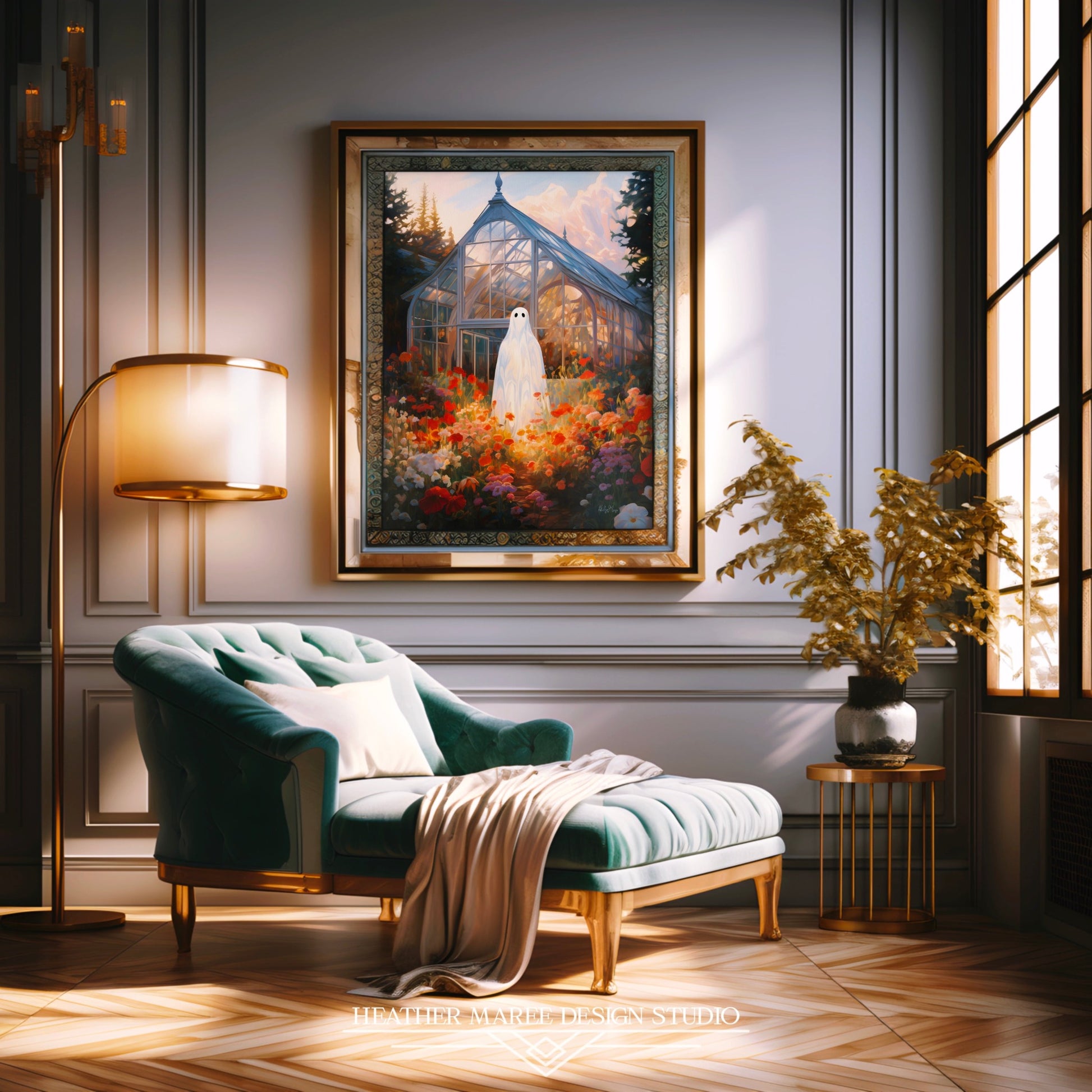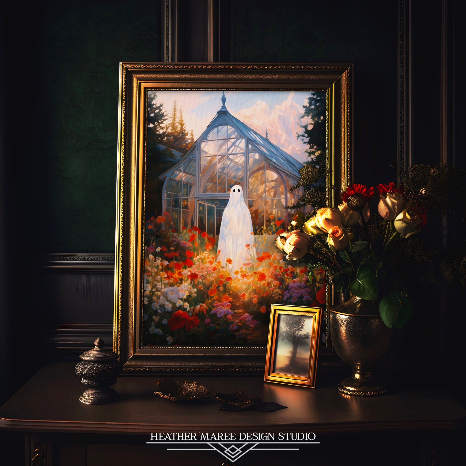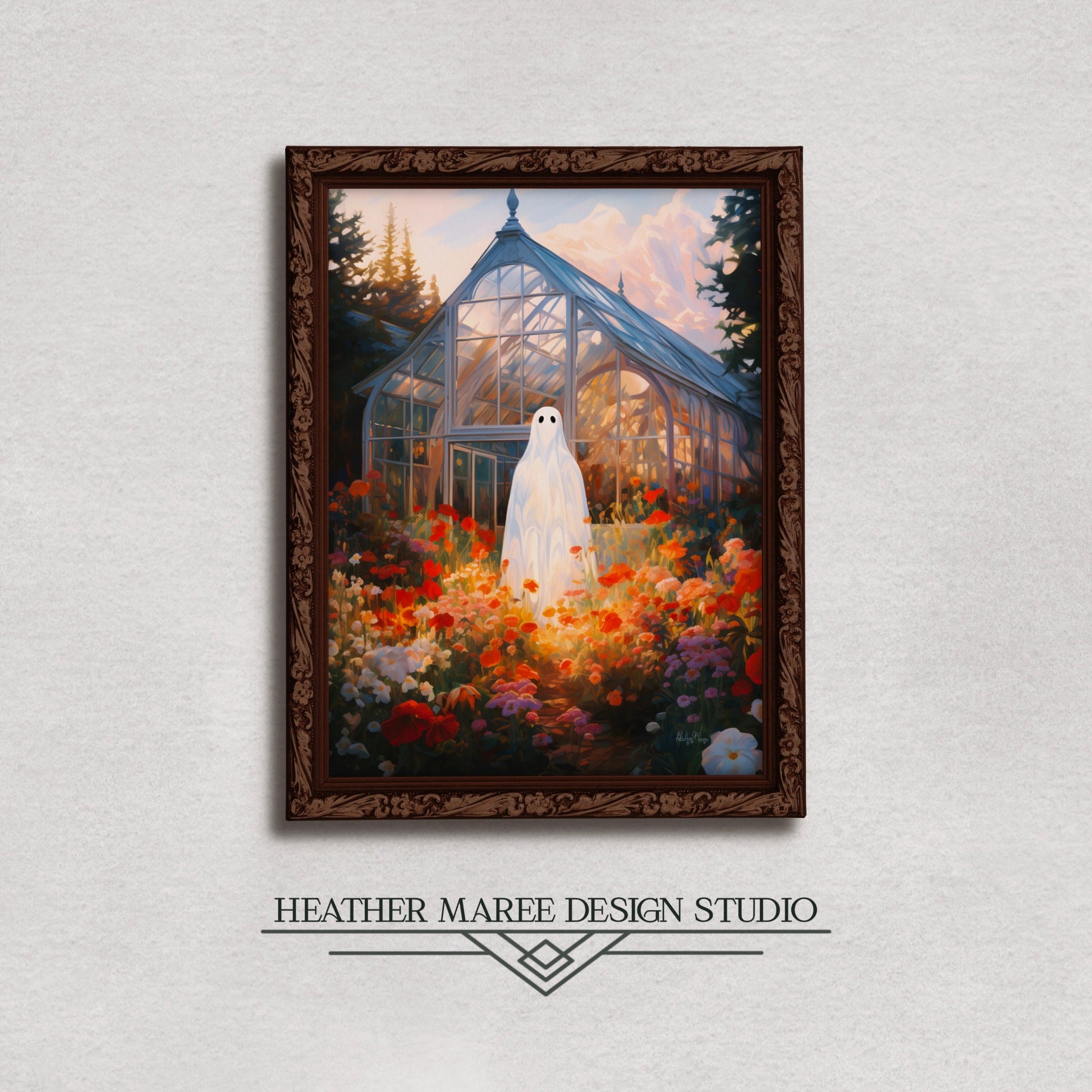 This mesmerizing piece seamlessly integrates into various home decor aesthetics, making it a versatile addition to your living space. Its enchanting fusion of ghostly elements with the vivid wildflower meadow creates a unique focal point for Halloween home decor, allowing you to infuse your space with a subtle touch of the supernatural. Moreover, the rich colors and moody ambiance make it a perfect fit for dark cottagecore decor, adding an air of mystery and wonder to your cozy retreat. Whether you're embracing maximalist aesthetics or simply seeking a captivating conversation starter, this impressionist painting promises to elevate your home decor with its otherworldly charm.