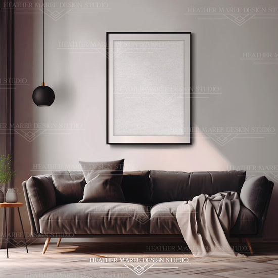 Elevate your creative presentations with our original mockup photograph featuring a sleek black picture frame placed above a charcoal gray sofa, bathed in soft sunlight. Inspired by modern minimalism, the room's decor sets the stage for a contemporary aesthetic. Finely crafted with a practical 1x1 aspect ratio, our mockups seamlessly integrate into your artistic expressions, promising authenticity, professionalism, and polished presentations on every occasion. Advance your creative journey with this thoughtfully designed mockup, where every detail serves as a testament to the uniqueness of your craft. Make a lasting impression as you showcase your work in a space that exudes sophistication and modern flair.