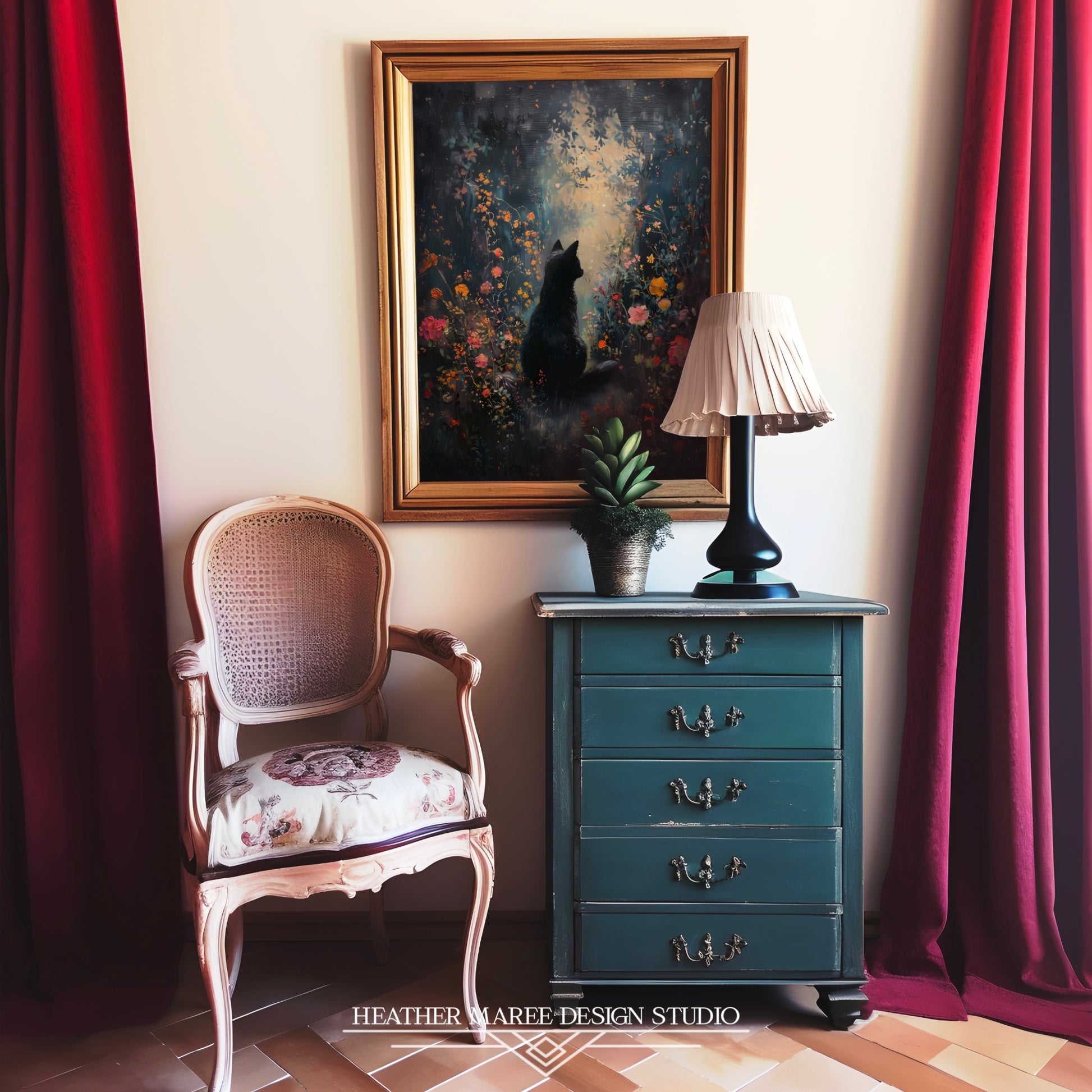 This versatile piece effortlessly complements a range of home decor styles, from the mystical allure of dark bohemian designs to the rustic charm of cottagecore decor and the eclectic vibrancy of maximalist-inspired interiors. Whether gracing a cozy reading nook adorned with vintage treasures, a nature-inspired bedroom retreat dressed in botanical prints, or a maximalist living room alive with bold colors and textures, this print brings a touch of magic to your home, inviting you to immerse yourself in its enchanting beauty.