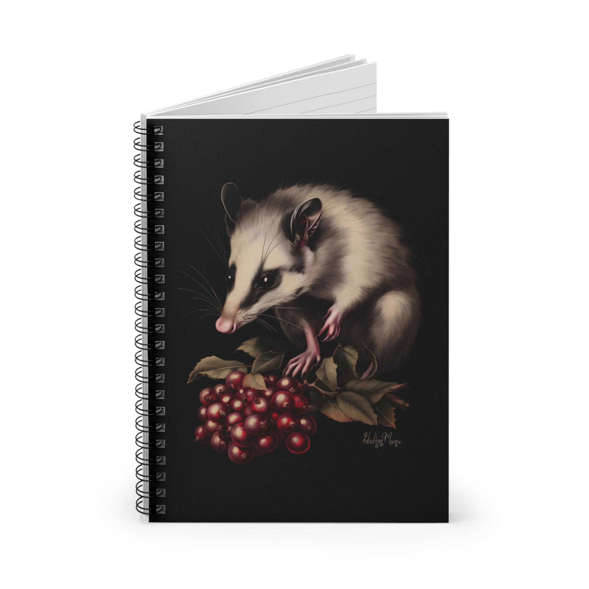 Opossum with Red Berries | Ruled Line Spiral Notebook