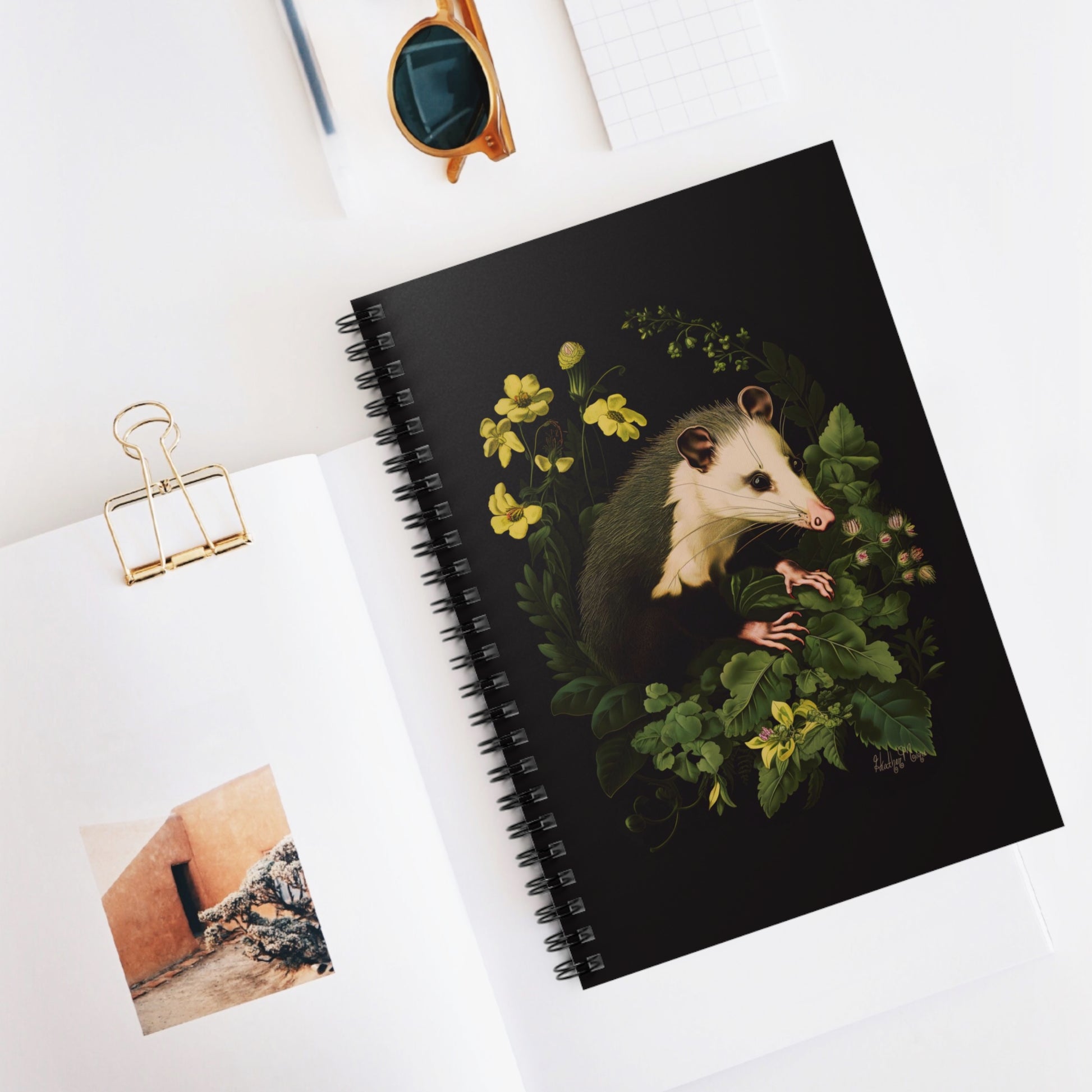 Opossum with Yellow Flowers | Ruled Line Spiral Notebook