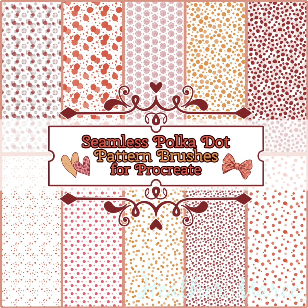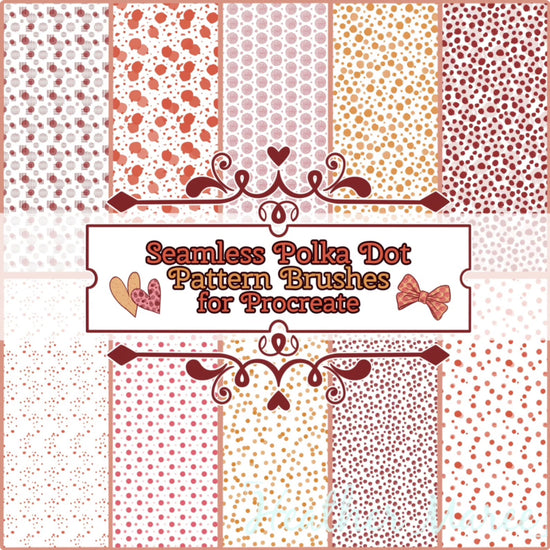 This pack includes 40 seamless polka dot pattern Procreate brushes. Seamless patterns are my go to for adding dimension to digital artwork, however, these brushes work well for DIY print out projects, phone backgrounds, wall prints, baby shower invitations, etc.