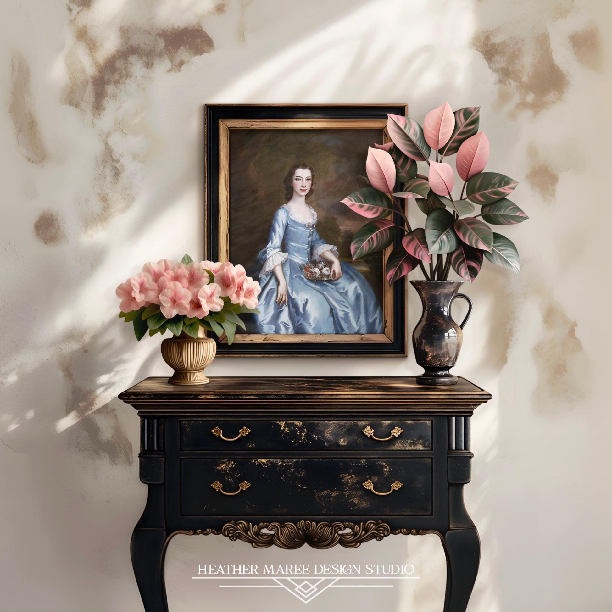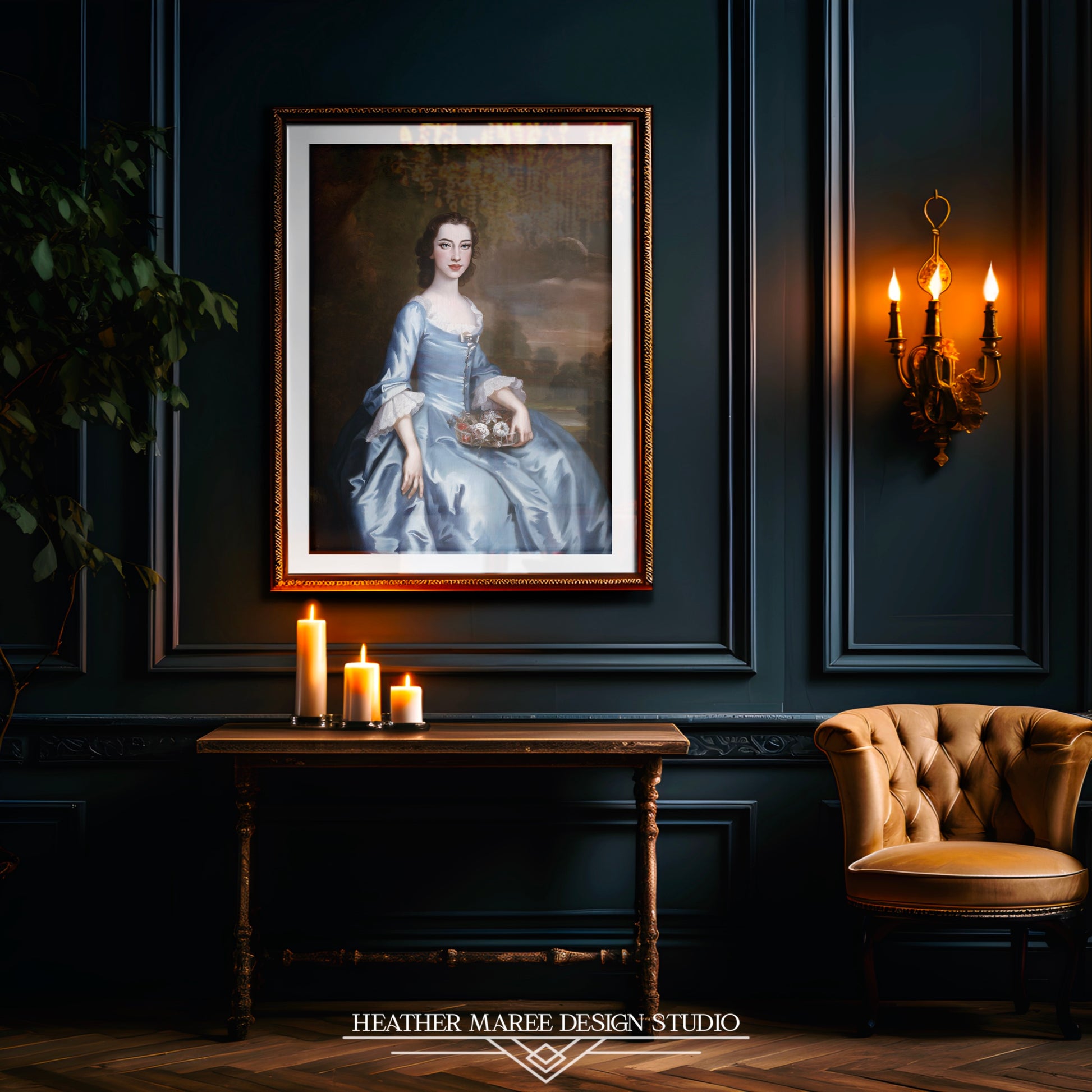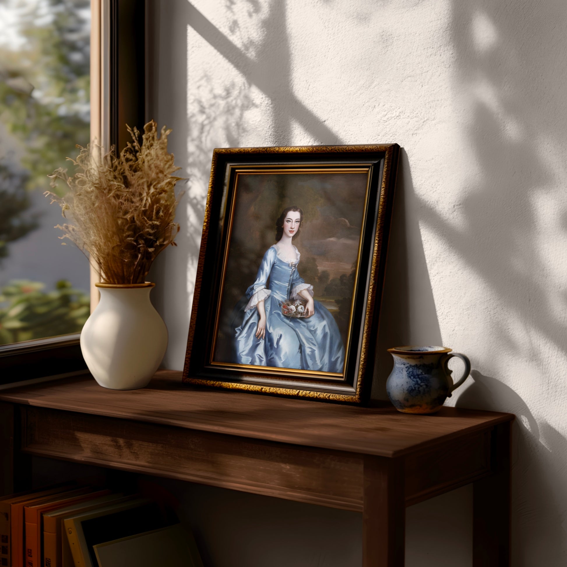 This exquisite artwork is a perfect addition to various home decor styles, effortlessly complementing vintage maximalist-inspired aesthetics. The pleasant colors and detailed composition make it an ideal focal point, adding a touch of historical charm to eclectic interiors. Additionally, the classical beauty and gentle color palette harmonize well with French Country decor, infusing a sense of refined elegance into living spaces. Hang it in your living room, bedroom, or study to infuse your home with the charm of yesteryears while maintaining a contemporary flair.