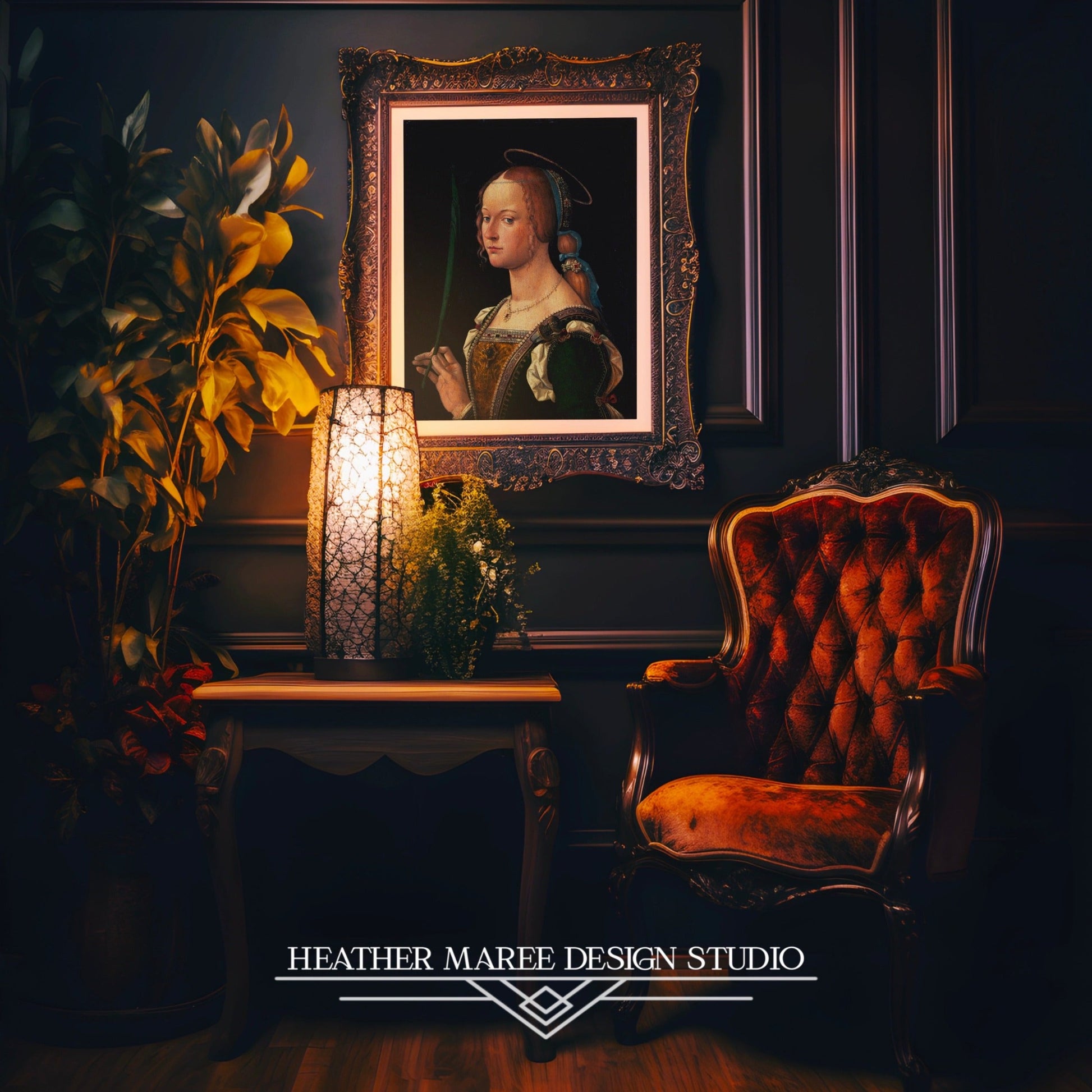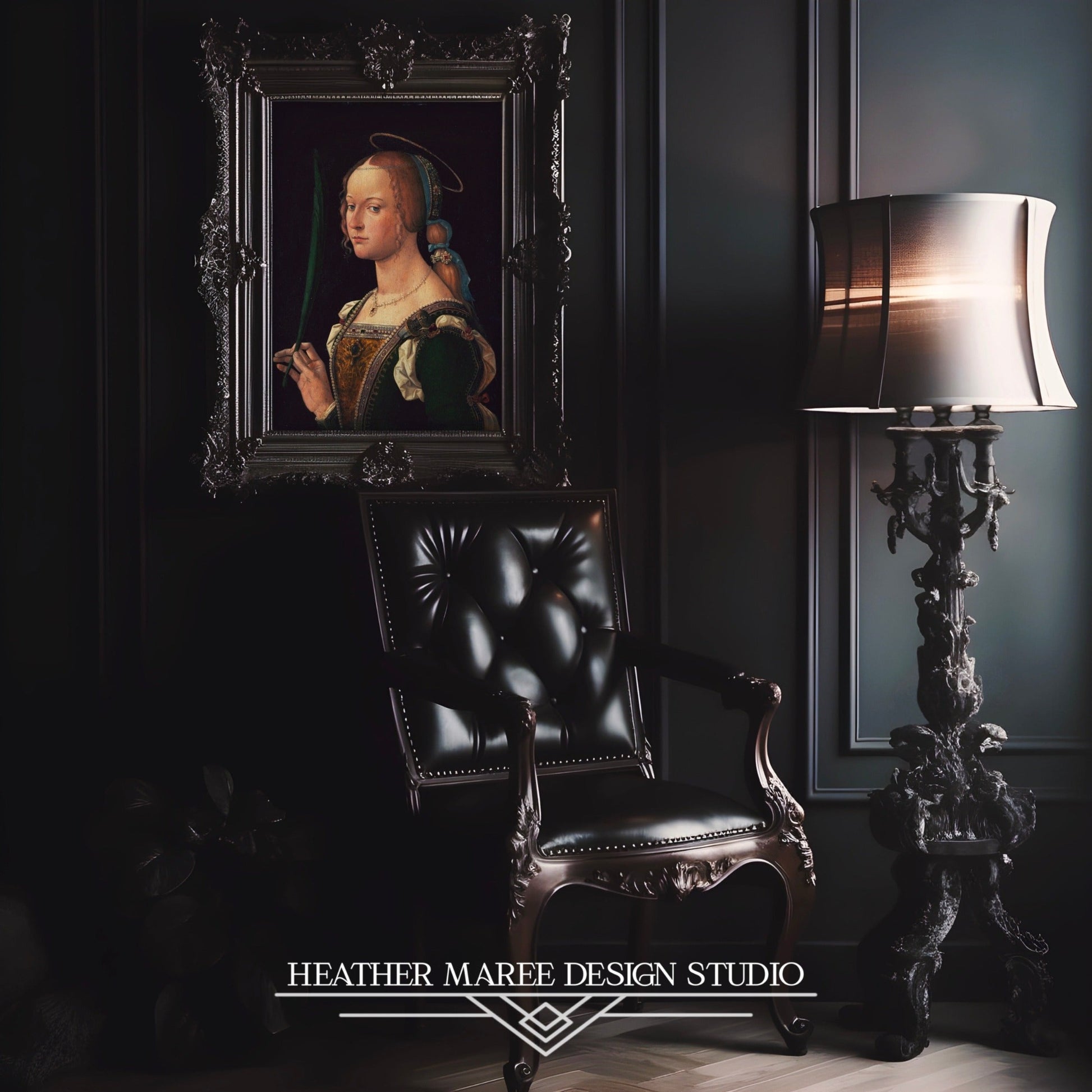Elevate your living space with a touch of history and mystique. This portrait effortlessly blends with a variety of décor styles, from the intellectual allure of dark academia to the enigmatic charm of gothic aesthetics. The artwork's intricate details and somber color palette create an intriguing focal point that complements eclectic interiors, while its maximalist appeal ensures it stands out as a conversation piece. Experience the allure of centuries past and add a touch of artistic grandeur to your surroundings with "Portrait of Saint Justina of Padua 🖼️💖