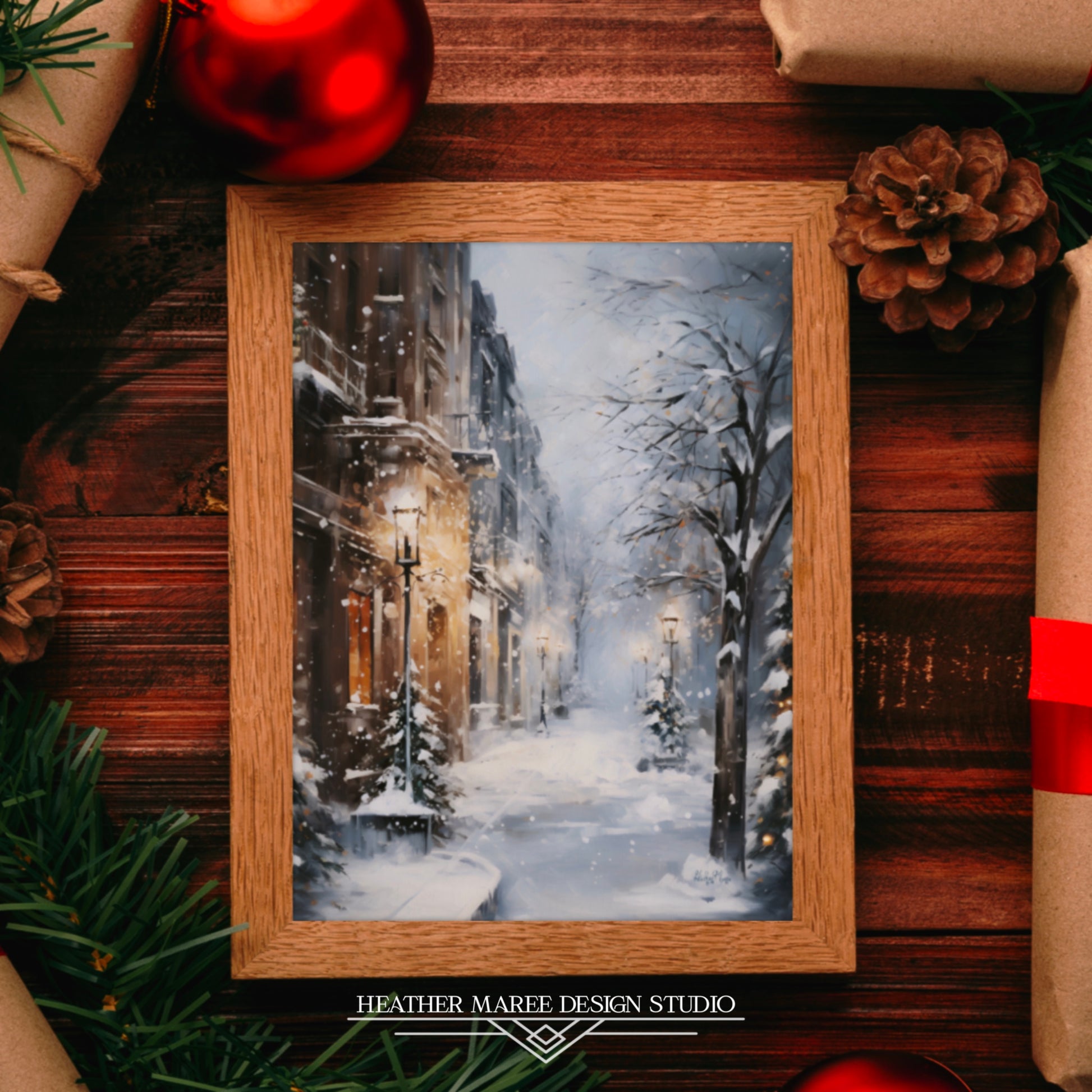 This lovely painting is a versatile addition to a variety of home décor styles, adding a touch of winter wonder to any space. Whether you're aiming to infuse your surroundings with the magic of the holidays, seeking to embrace a rustic aesthetic, or curating a maximalist and/or vintage-inspired décor, this artwork will elevate your interior design. Its serene depiction of a snow-covered urban landscape makes it a perfect choice for Christmas and holiday décor, as well as a cozy addition to your winter-themed home décor 🖼️💖