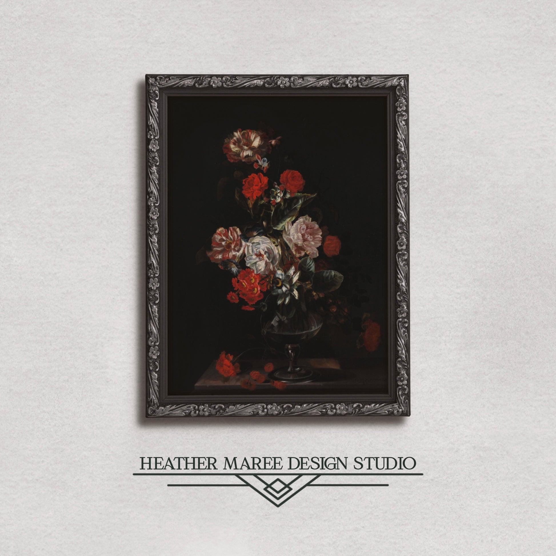 This digitally altered artwork impeccably complements various home decor styles, making it a versatile addition to your living space. The dark and mysterious ambiance lends itself beautifully to gothic aesthetics, adding a touch of drama and sophistication to darker-themed interiors. Additionally, the vibrant floral hues create a striking contrast that can enhance eclectic and dark bohemian decor styles, infusing energy and visual interest into your home. Whether displayed in a living room, bedroom, or study, this altered art print invites a sense of timeless beauty into your home, creating a focal point that sparks conversations and admiration.