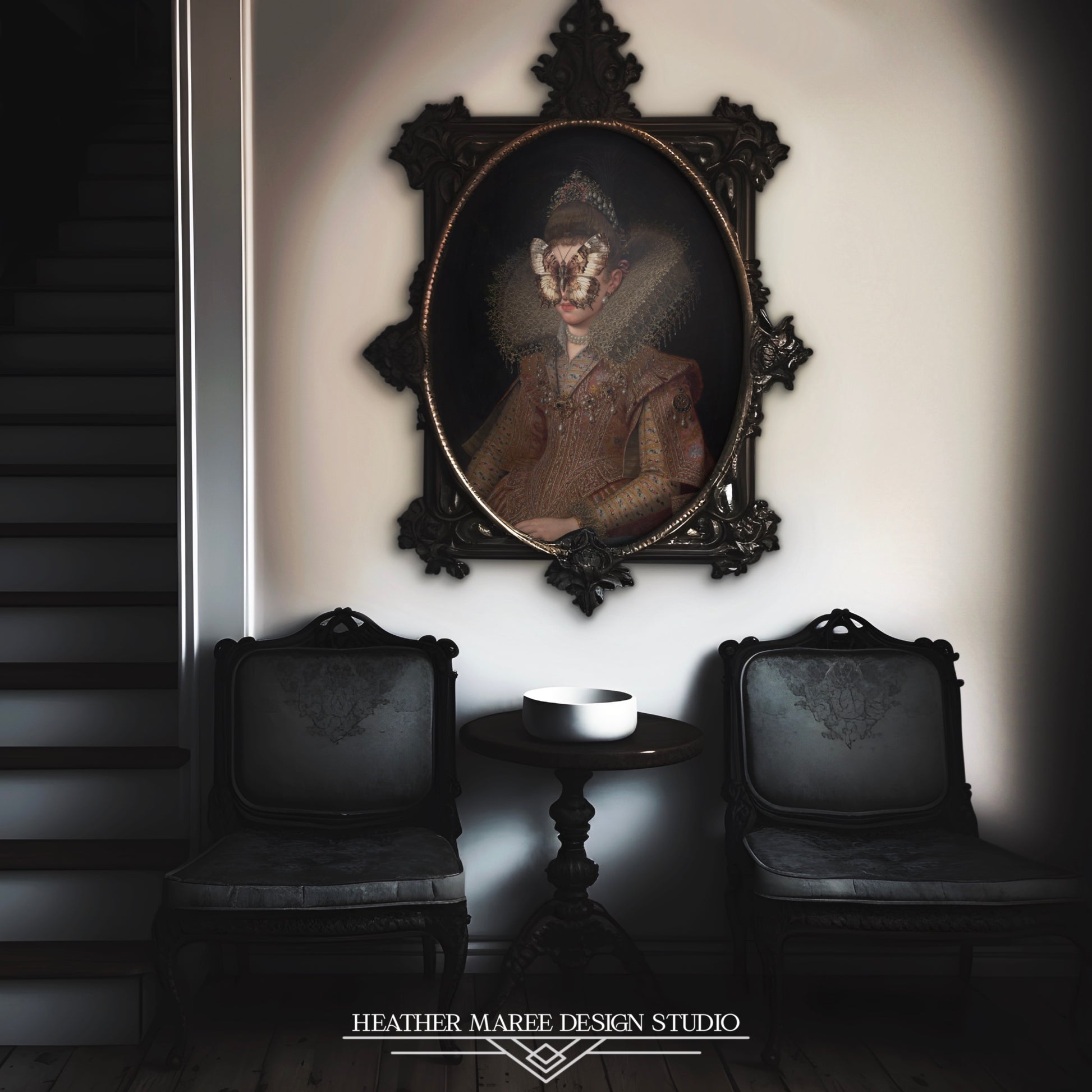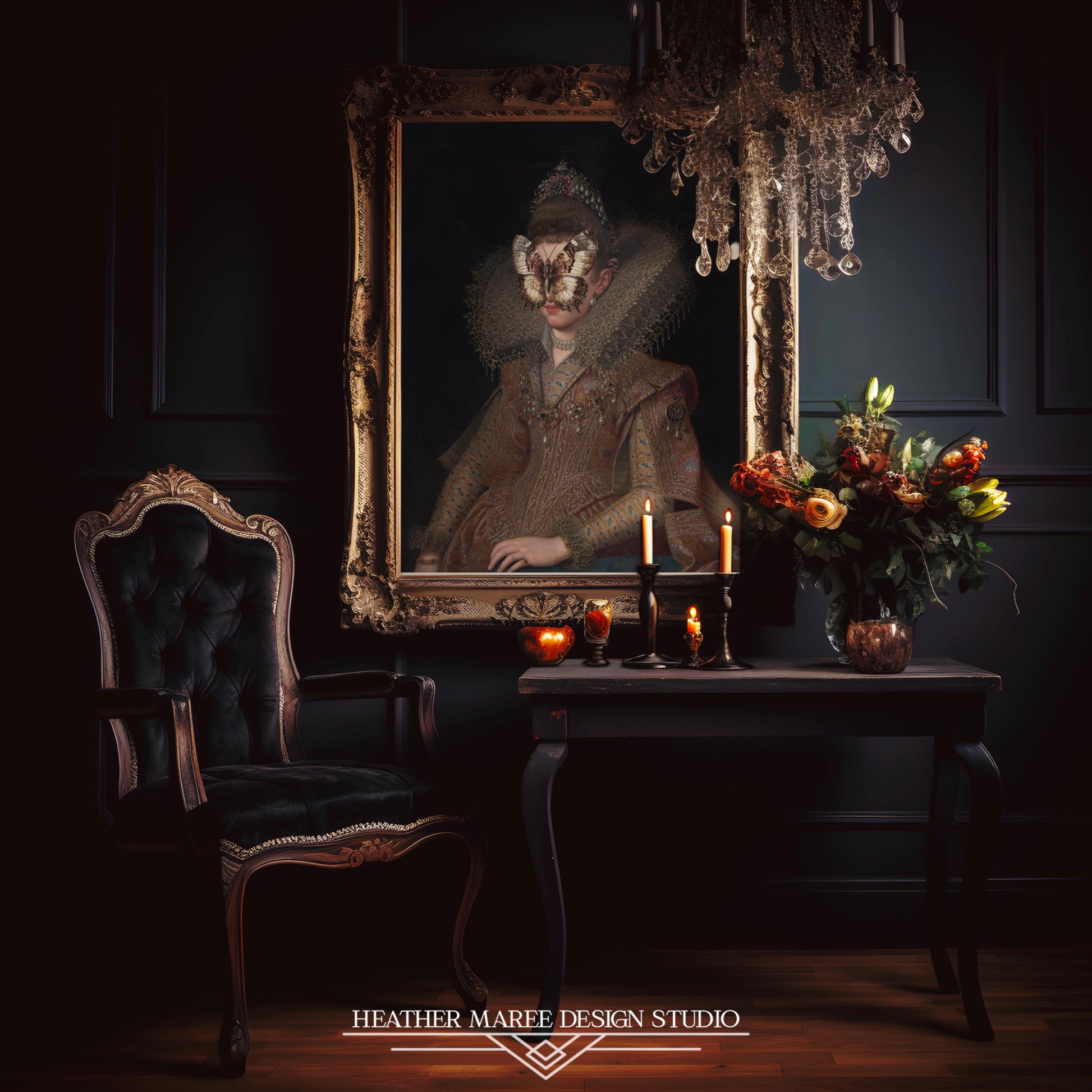 This distinctly transformed art print serves as a timeless complement to a multitude of home interior styles, including vintage eclectic, moody maximalism, or those inspired by dark academia. It stands as a striking focal point in spaces that harmoniously blend vintage and contemporary elements or in areas that cherish art as a catalyst for conversation. This artwork will transform any living room, bedroom, or study, bringing an exciting touch of elegance combined with a delightful surprise, making it ideal for art lovers who seek to inspire their imagination.