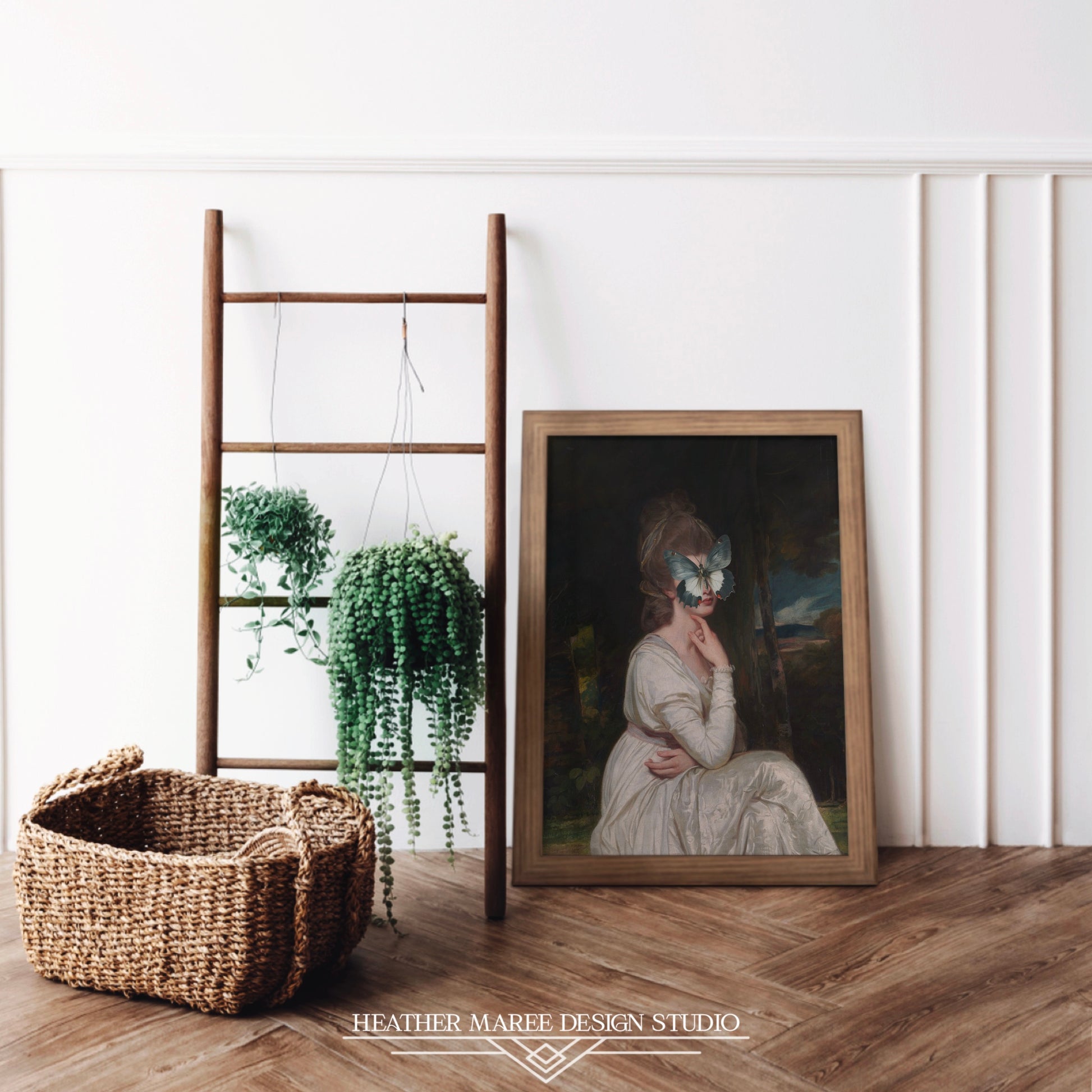 The gentle, pastoral background and whimsical subject make this print a perfect addition for spaces that celebrate grandmillenial, Victorian revival, cottagecore, and other vintage-inspired interior design styles. The combination of traditional portraiture and surreal elements makes it an excellent choice for rooms that celebrate bold artistic expressions. Whether situated in a living room, a creative workspace, or a snug reading nook, this exclusive piece injects a delightful blend of whimsy and sophistication into any decor.