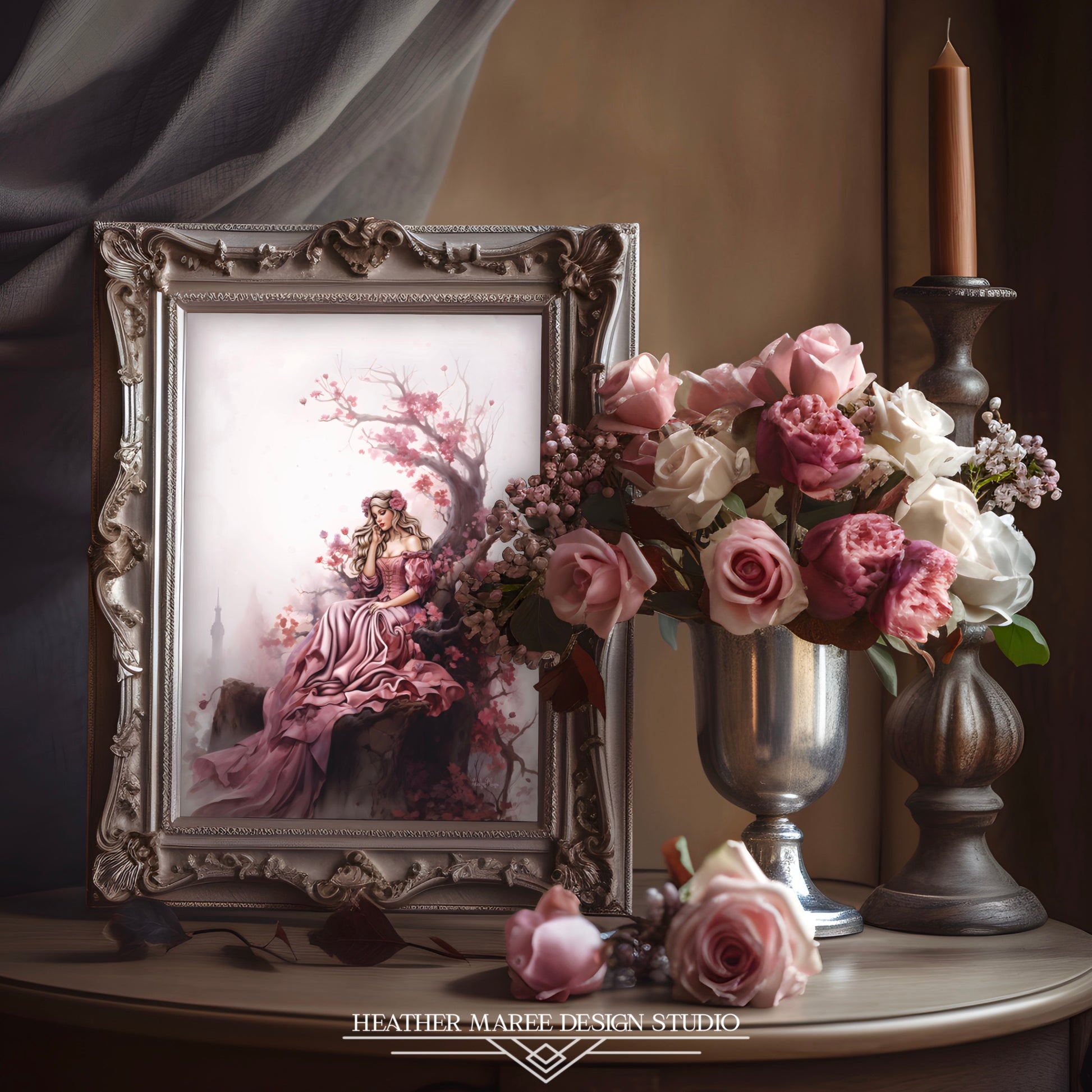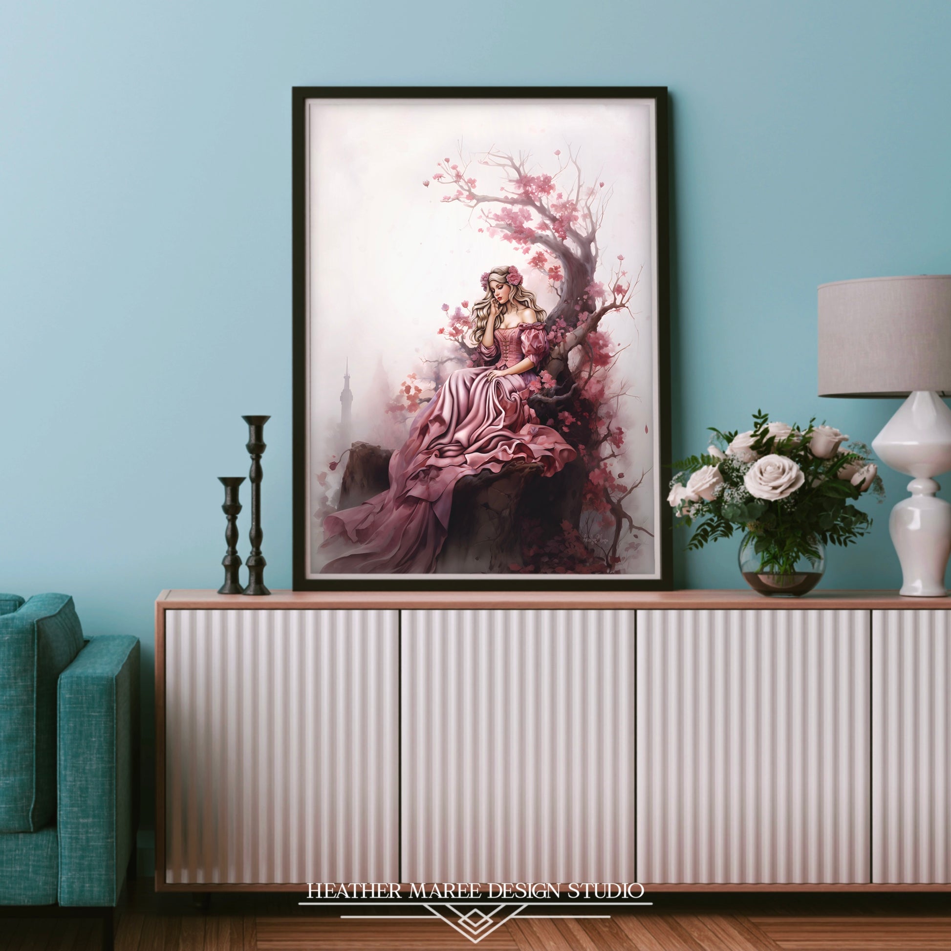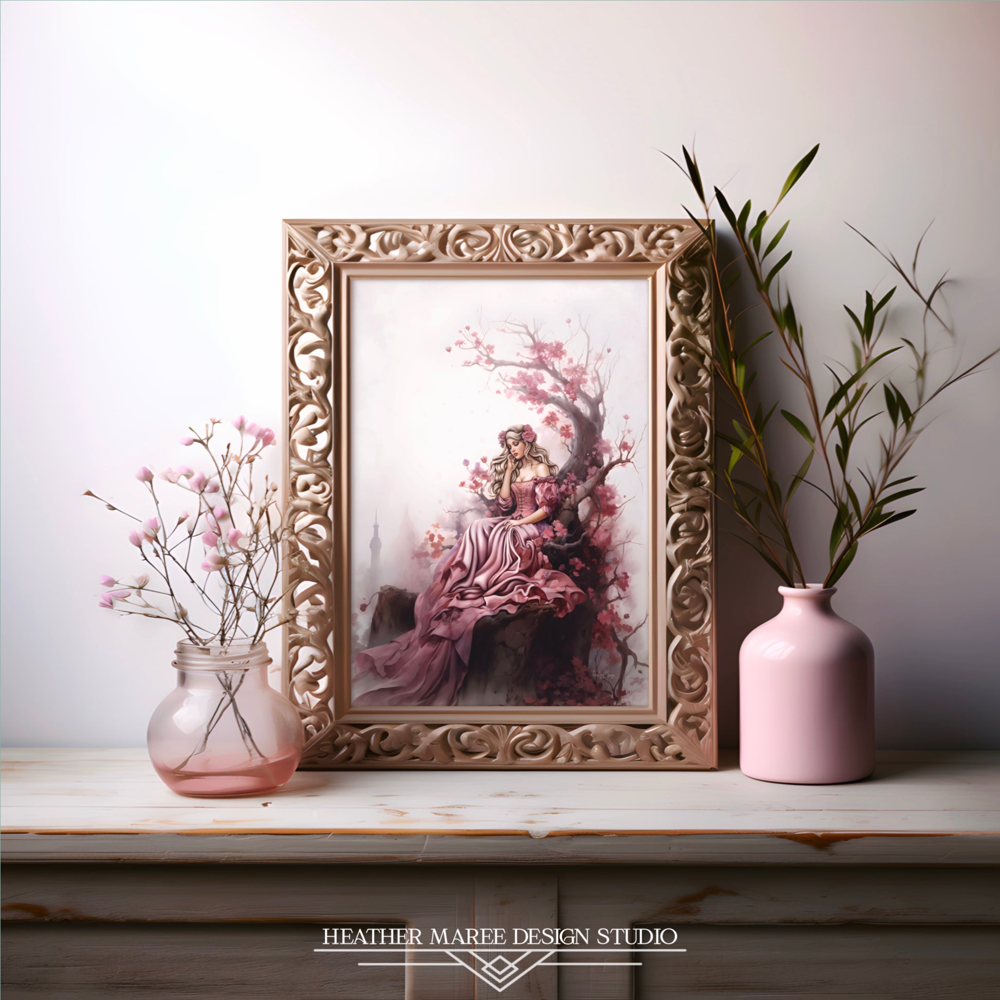 This mesmerizing piece is a dream for those captivated by the allure of fairy tales and the timeless charm of princess-inspired home decor aesthetics. This art print is perfect for enthusiasts of cottagecore home decor and vintage or maximalist-inspired aesthetics, this digital painting becomes a captivating focal point, transforming any space into a haven of sophistication and fantasy.