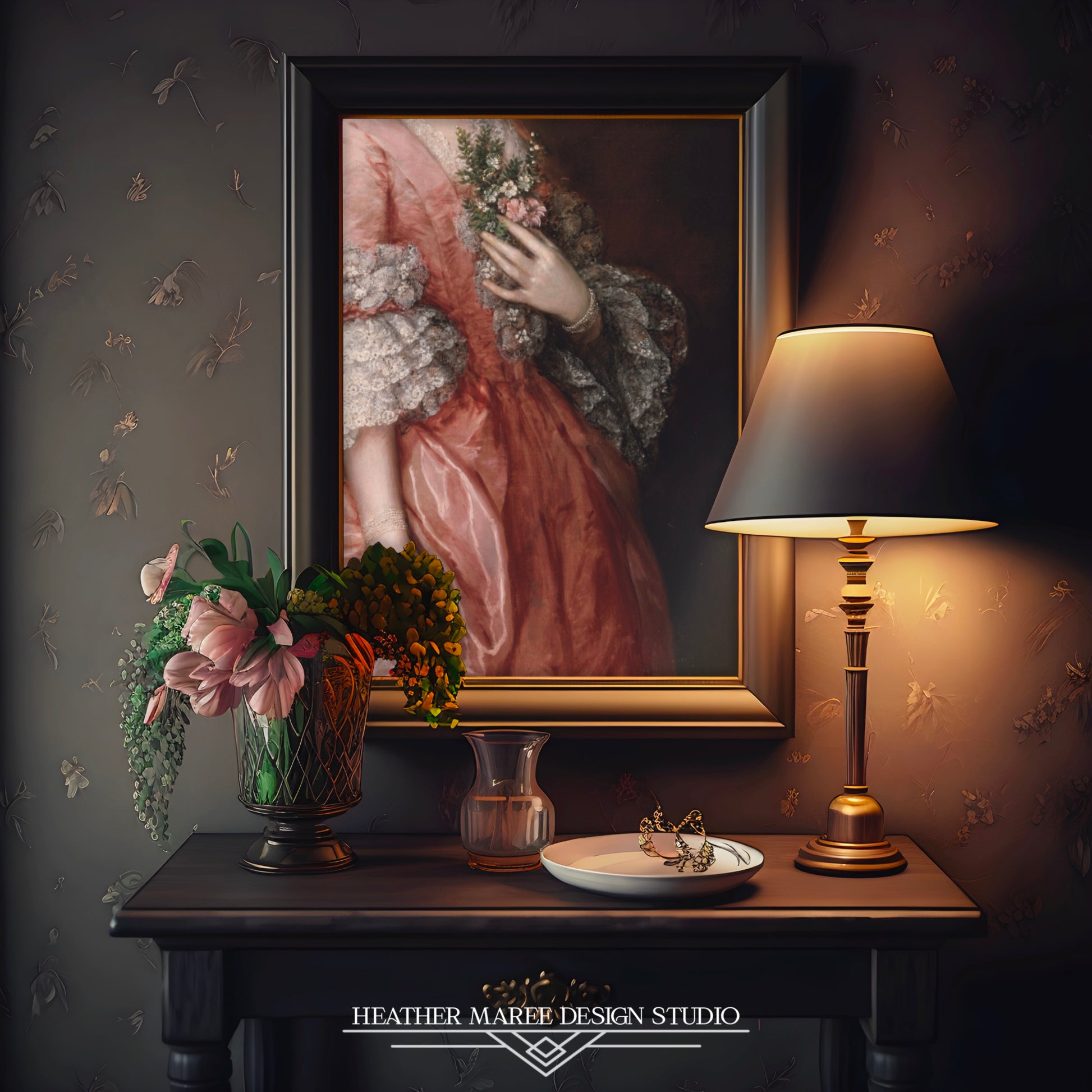 This digitally altered vintage painting effortlessly complements various home decor styles, making it a versatile addition to your living spaces. The muted color palette and antique aesthetic harmonize seamlessly with vintage maximalist-inspired decor, infusing historical grandeur into eclectic spaces. Additionally, the classical beauty and refined composition make it an ideal match for traditional decor, bringing a sense of artistry and cultural richness into your home. Whether displayed in a living room, study, or bedroom, this carefully altered artwork invites a touch of historical allure to grace your living spaces.
