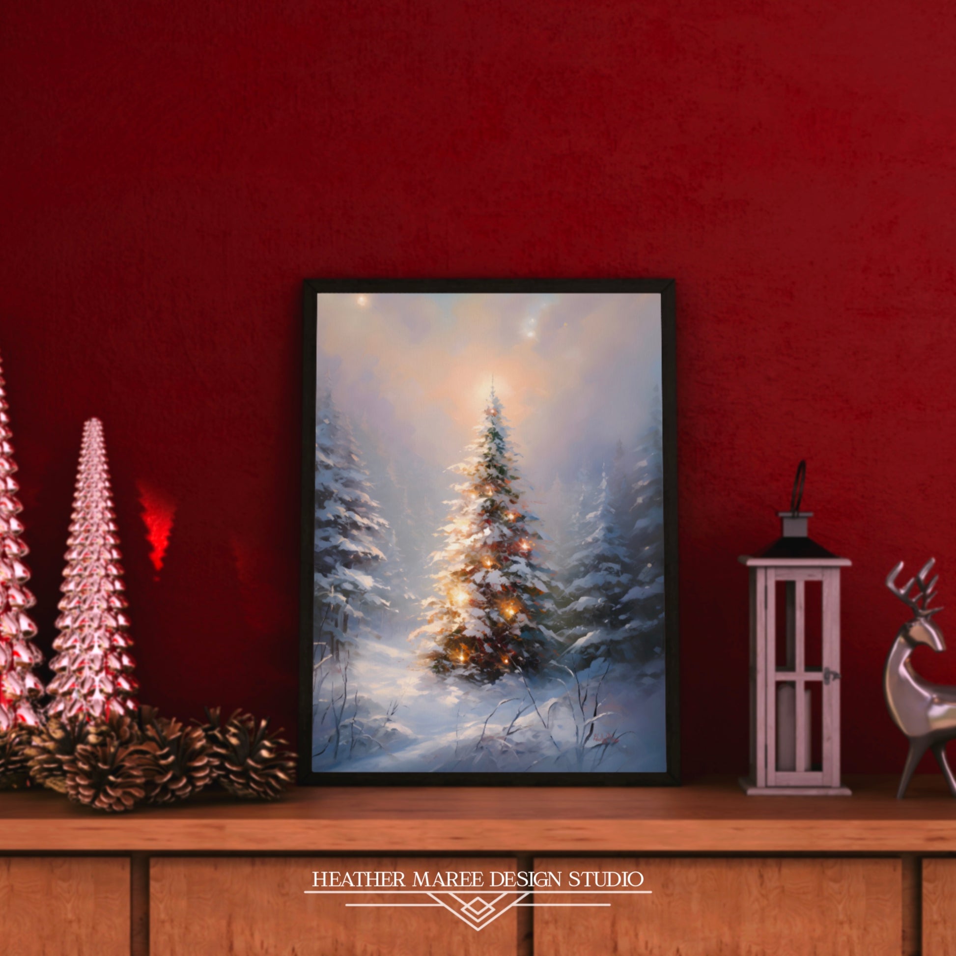 This artwork effortlessly complements a variety of décor styles, making it a versatile addition to your home. Channel the cozy charm of the season with rustic home décor, as the snowy forest and festive touches evoke feelings of comfort and warmth. This art print will infuse your space with the festive spirit and is an excellent addition to Christmas and holiday home décor. Moreover, its timeless appeal makes it a fitting choice for maximalist and/or vintage-inspired décor styles, adding a touch of elegance and nostalgia to any space 🖼️💖